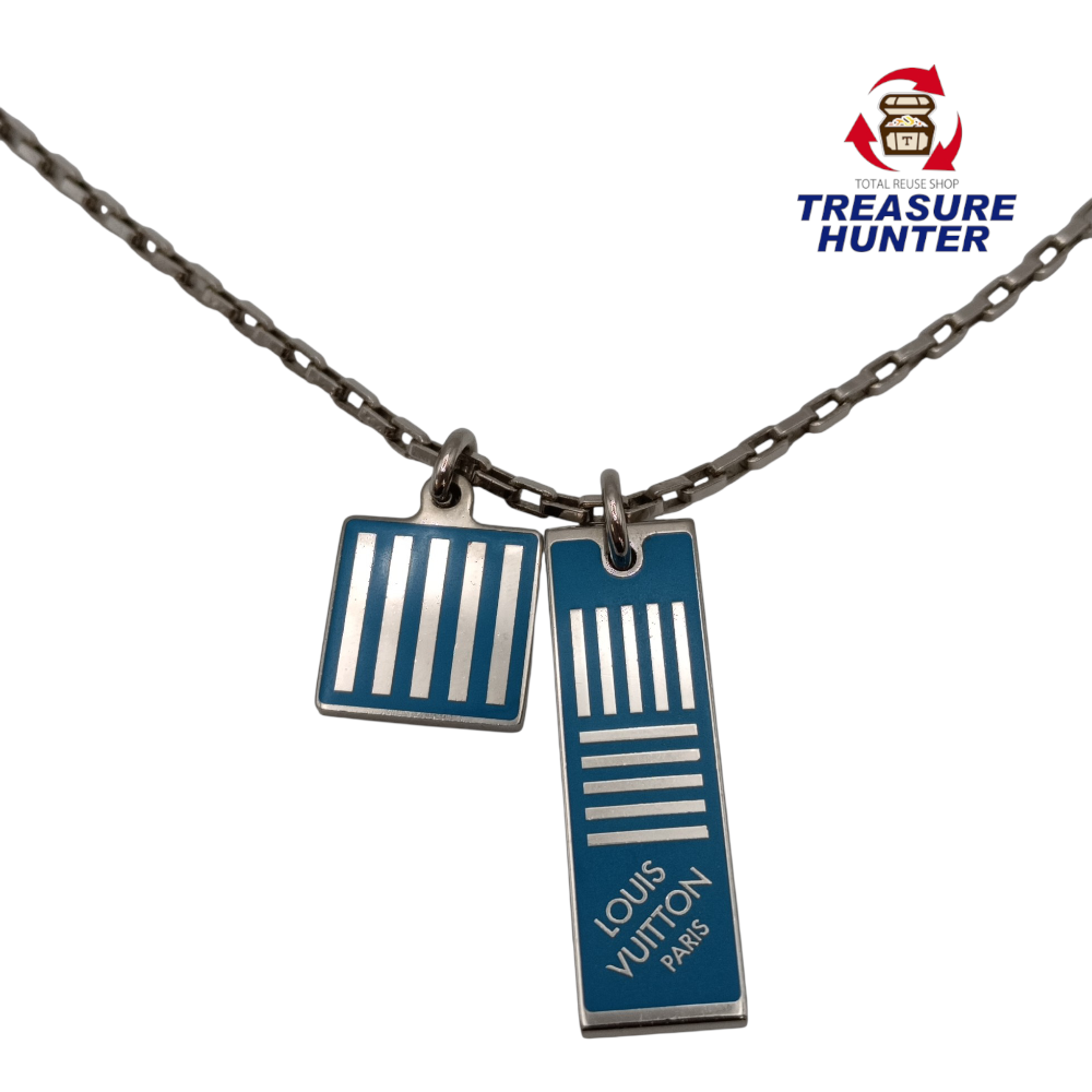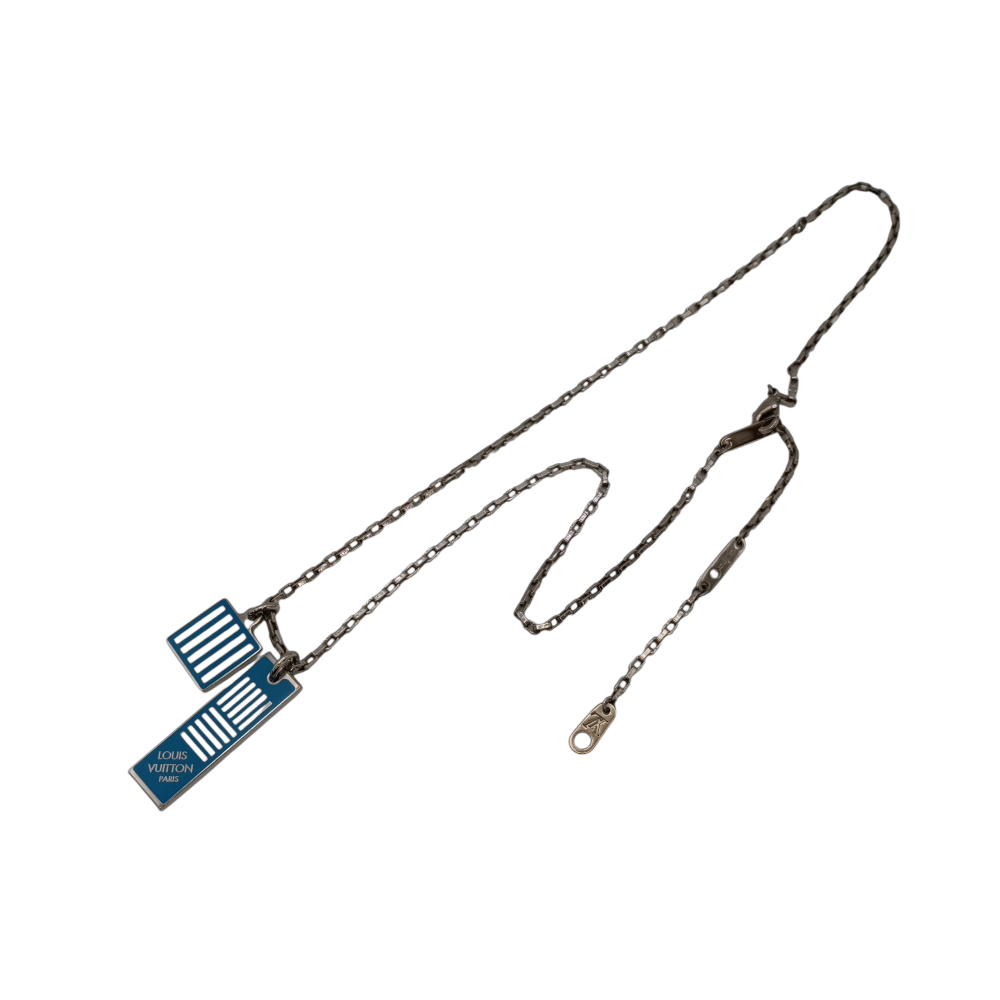 中古 LOUIS VUITTON ルイヴィトン コリエ ダミエカラーズ ネックレス M62596 ブルー シルバー