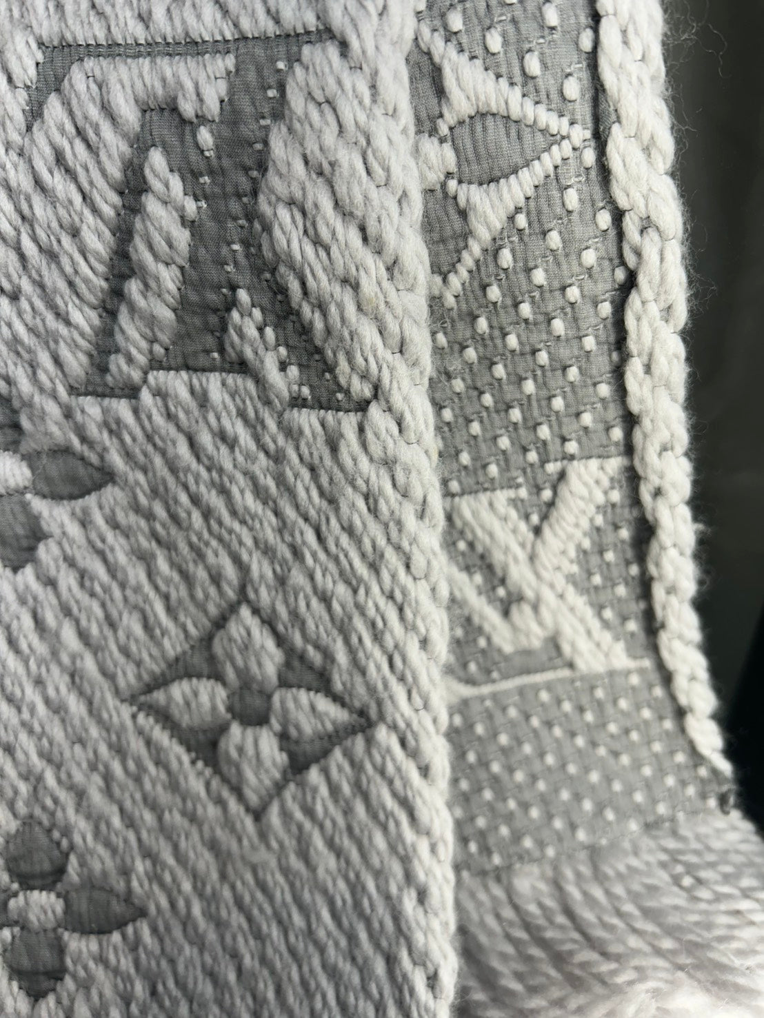 LOUIS VUITTON エシャルプ・ロゴマニア シルク混マフラー M74742 グレー ルイヴィトン