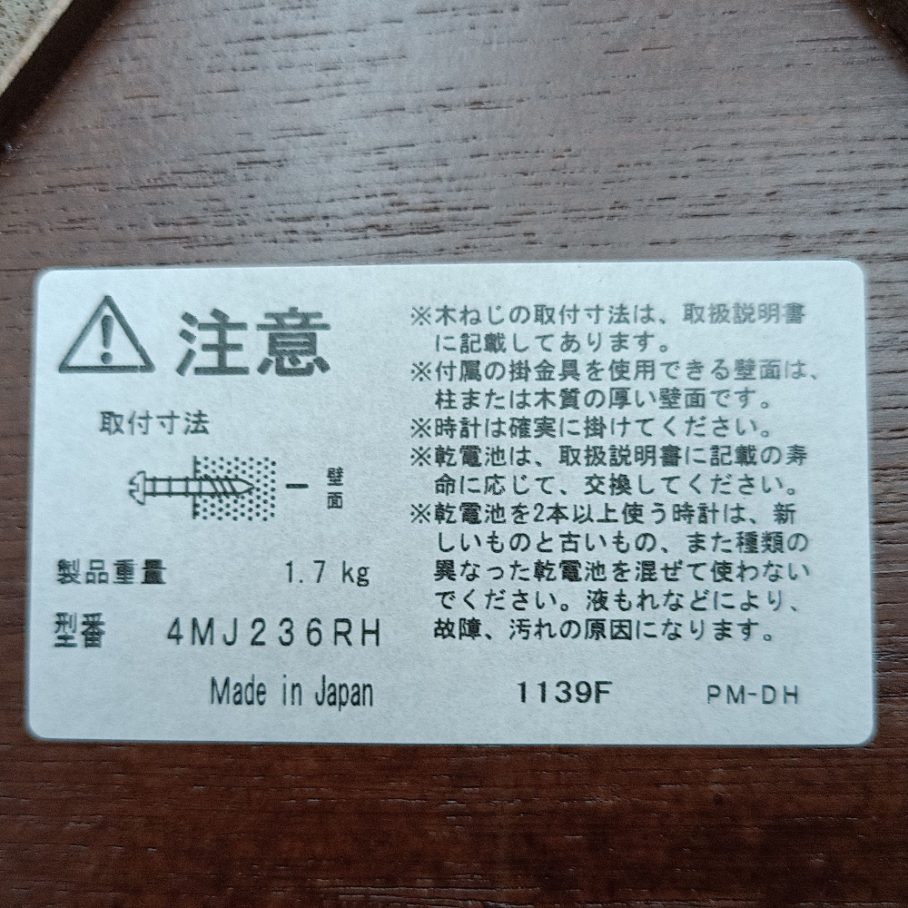 中古 RHYTHM 鳩時計 4MJ236RH カッコー クロック 壁掛け 振り子 時計 木製 CITIZEN