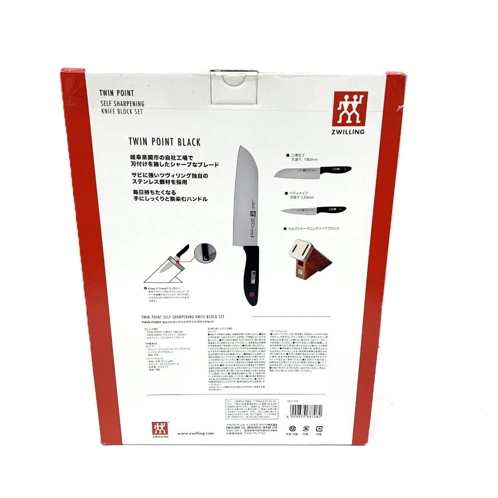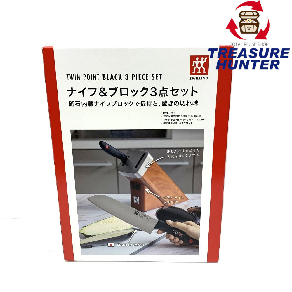 ZWILLING(ツヴィリング) ナイフ&ブロック 3点セット 三徳包丁/ペティナイフ/ブロック TWIN POINT BLACK 箱開封済未使用品
