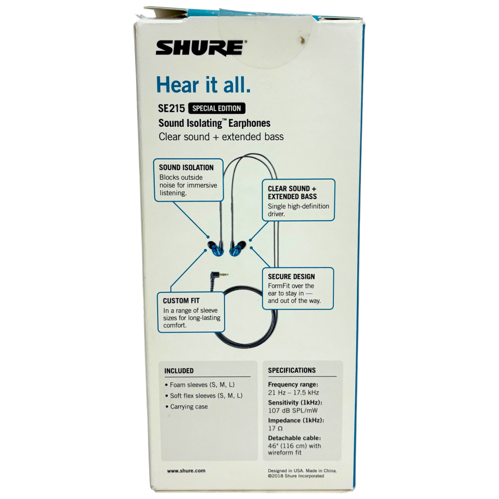 | 商品詳細 | メーカー:SHURE シュア 型番:SE215SPE-A 映像出力:トランスルーセントブルー 年式:2012年 |