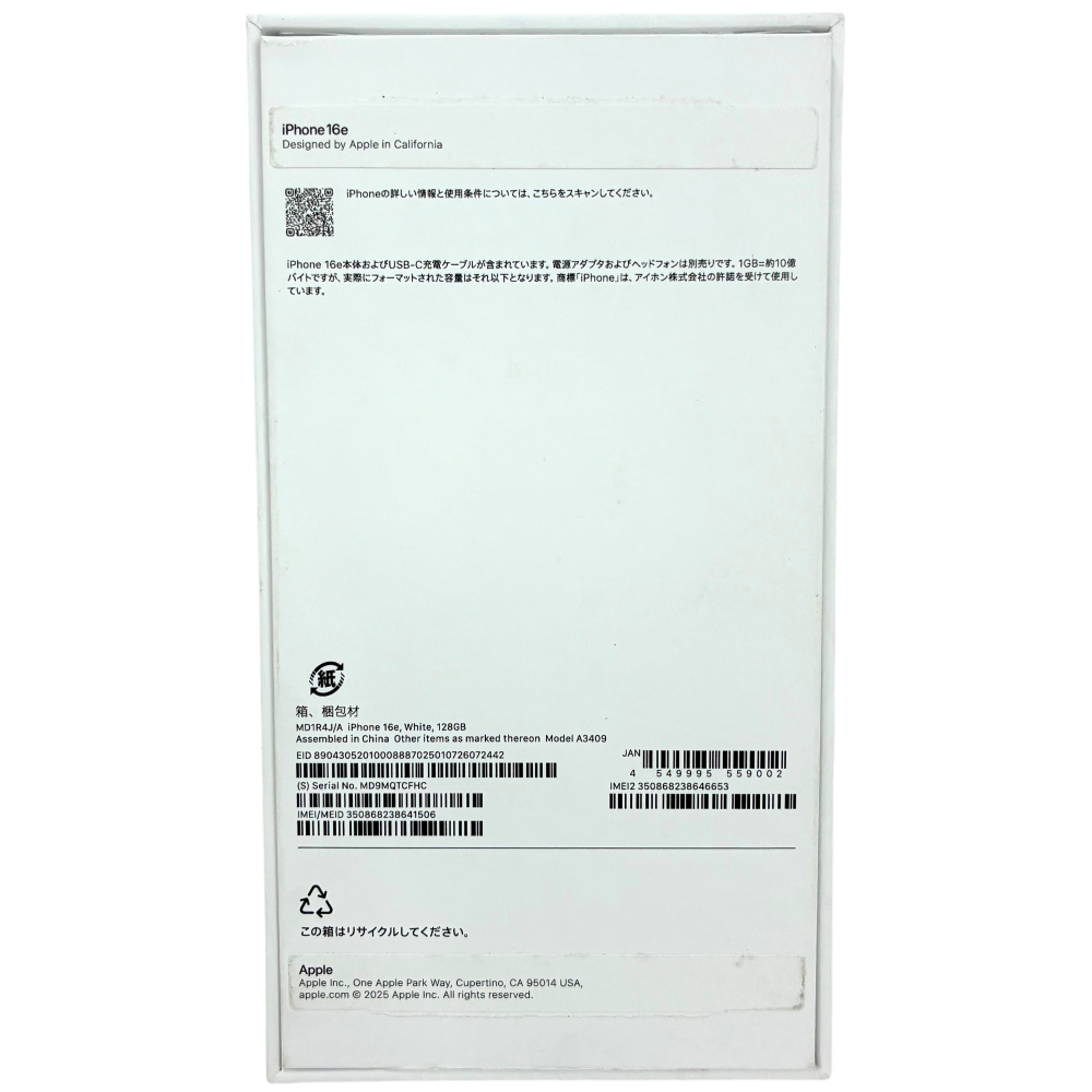 Apple iPhone 16e 128GB ホワイト MD1R4J/A 6.1インチ SIMフリー 利用制限○ 2025年 アップル