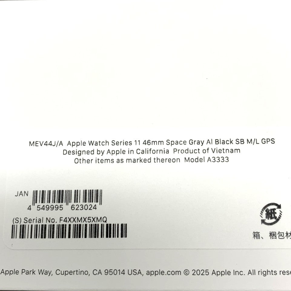 Apple Watch Series11 GPSモデル 46mm MEV44J/A スペースグレイアルミニウムケース ブラックスポーツバンドM/L 2025年 アップル
