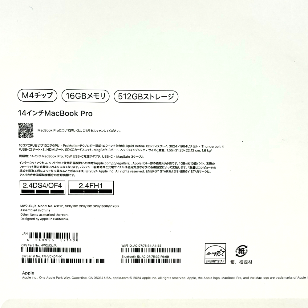 Apple MacBook Pro 14.2インチ SSD512GB MW2U3J/A スペースブラック アップル