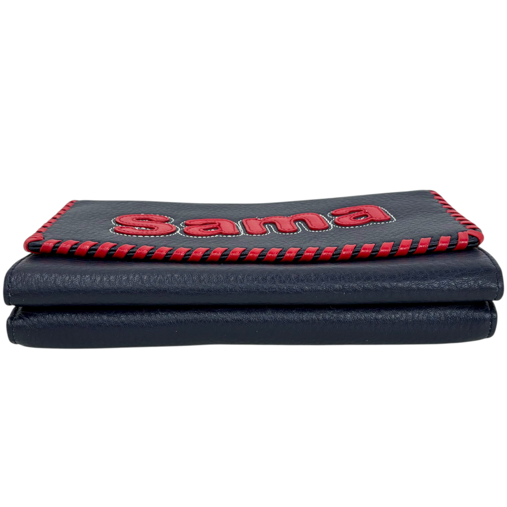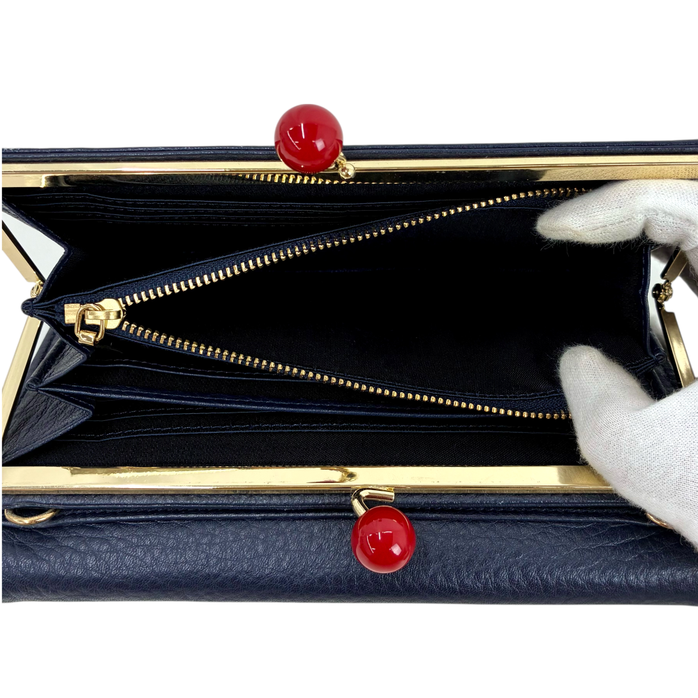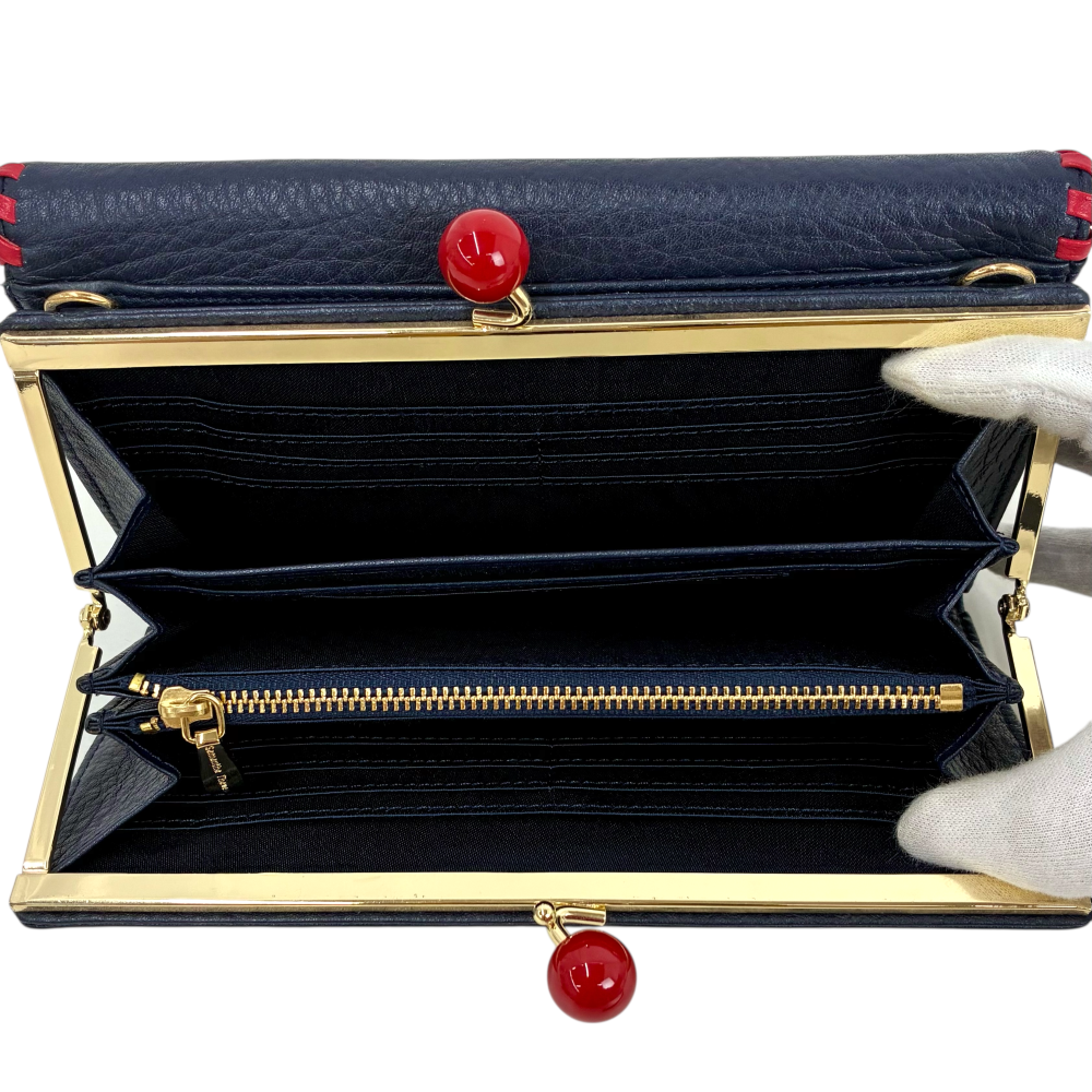 Samantha Thavasa レザー がま口ショルダーバッグ ネイビー×レッド サマンサタバサ