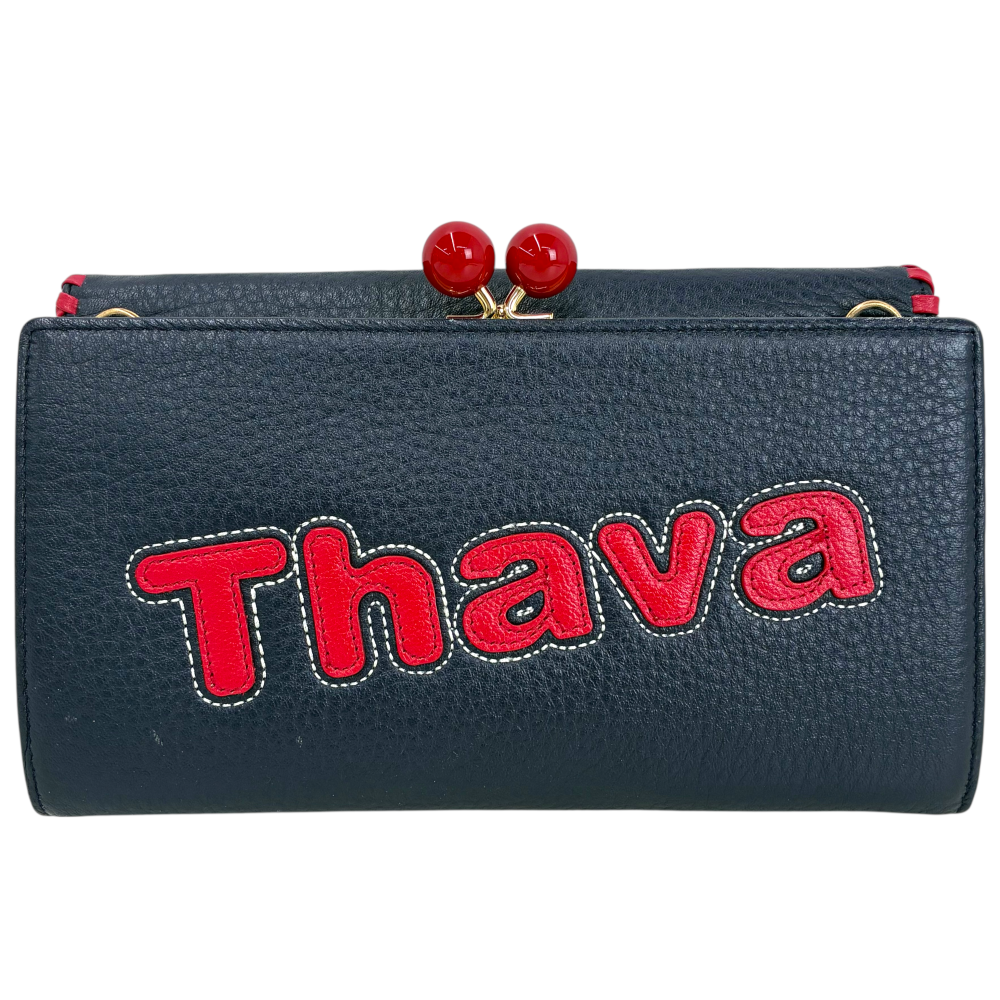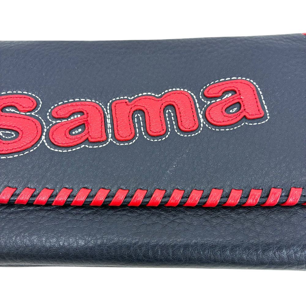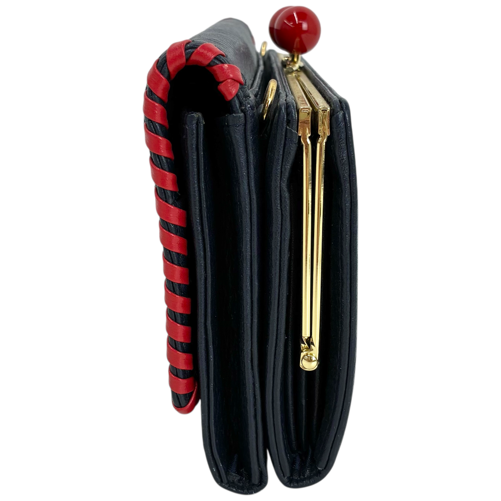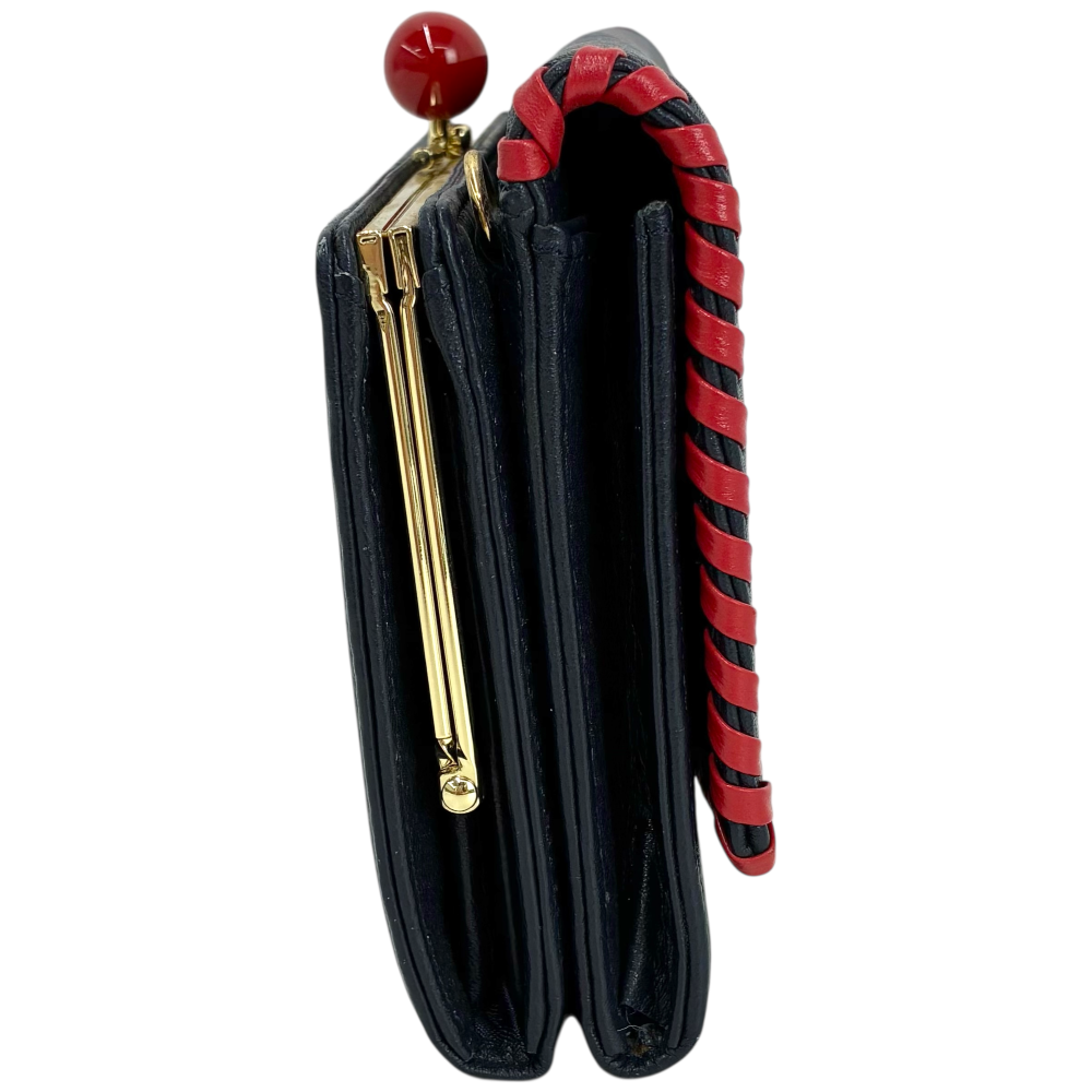 Samantha Thavasa レザー がま口ショルダーバッグ ネイビー×レッド サマンサタバサ