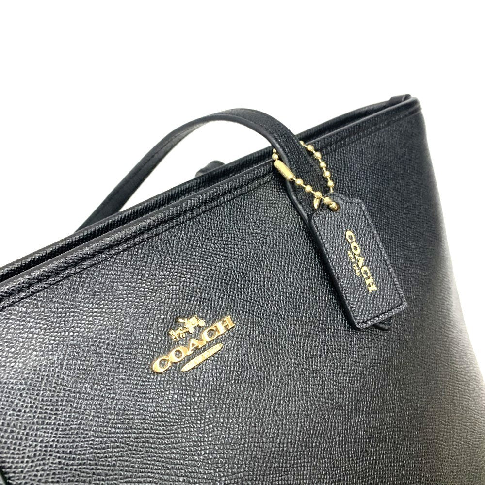 COACH(コーチ) シティ レザー トートバッグ F58846 ダブルフェースレザー ブラック ファスナー開閉 レディーズ バッグ