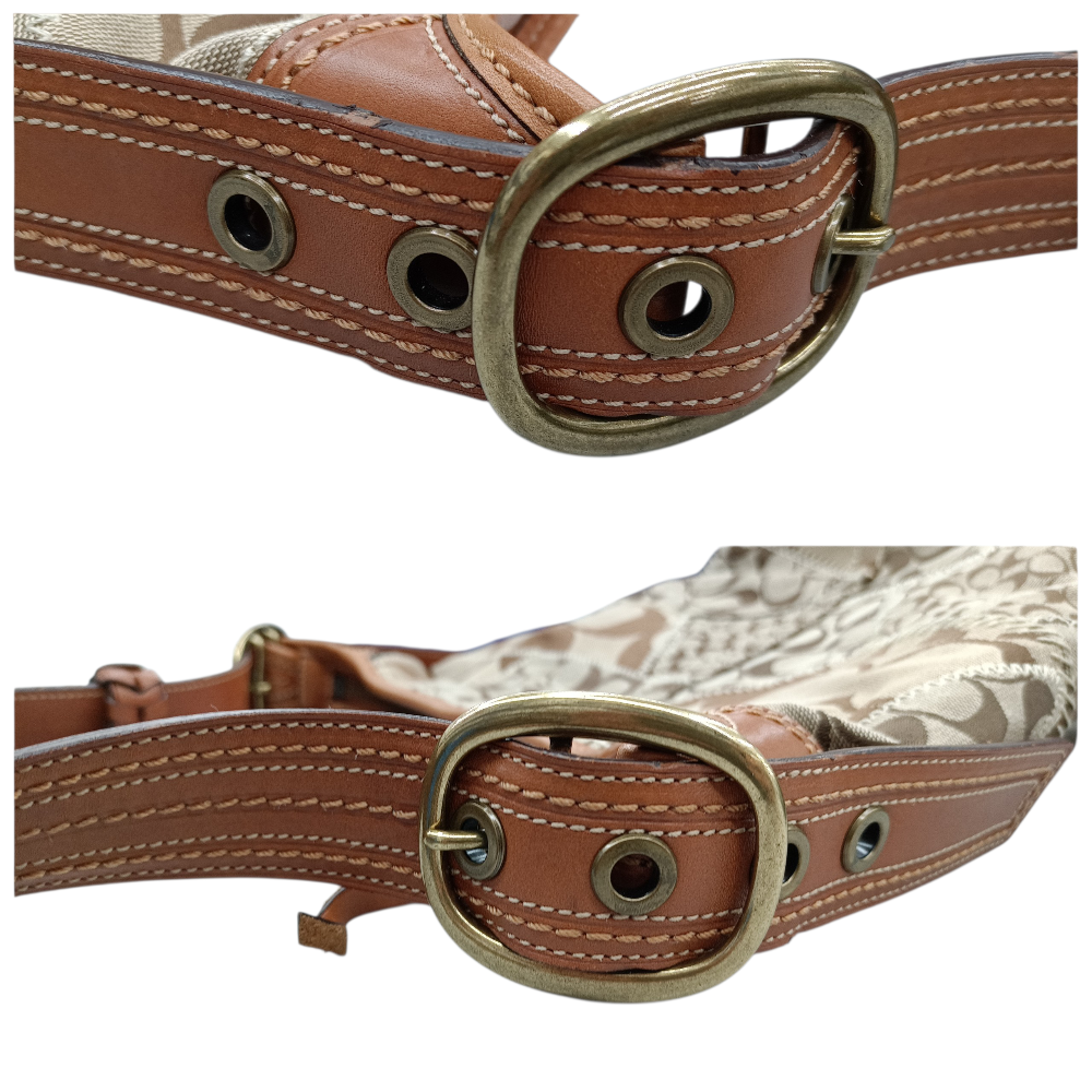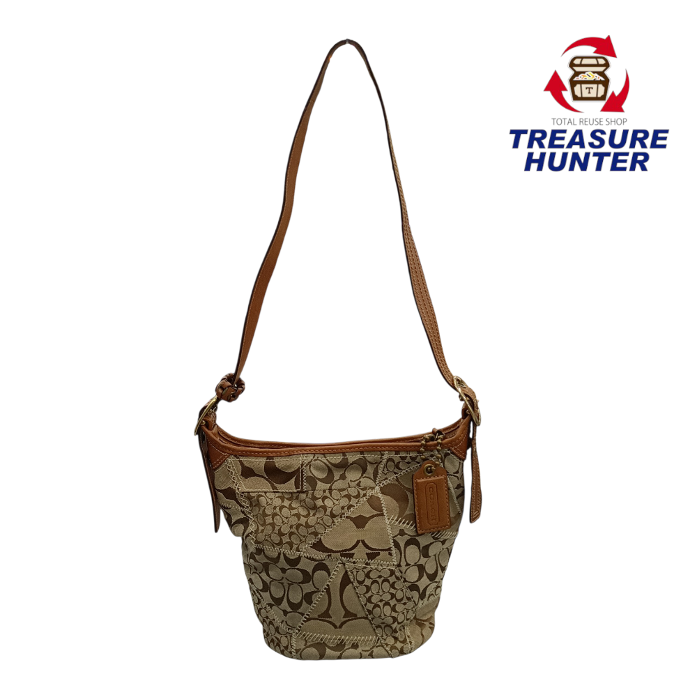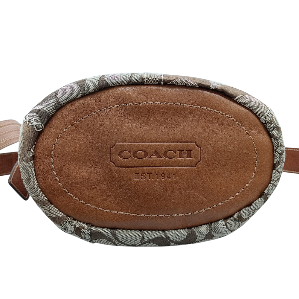 中古 COACH ブリーカー シグネチャー キルテッドダッフル 11452 ショルダーバッグ バケツ型 レザー×キャンバス ブラウン