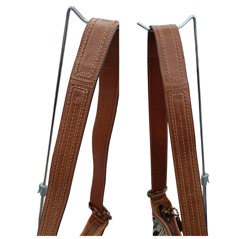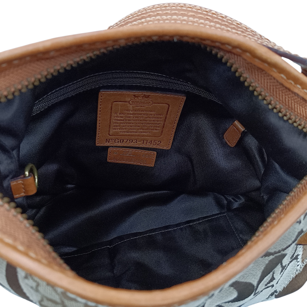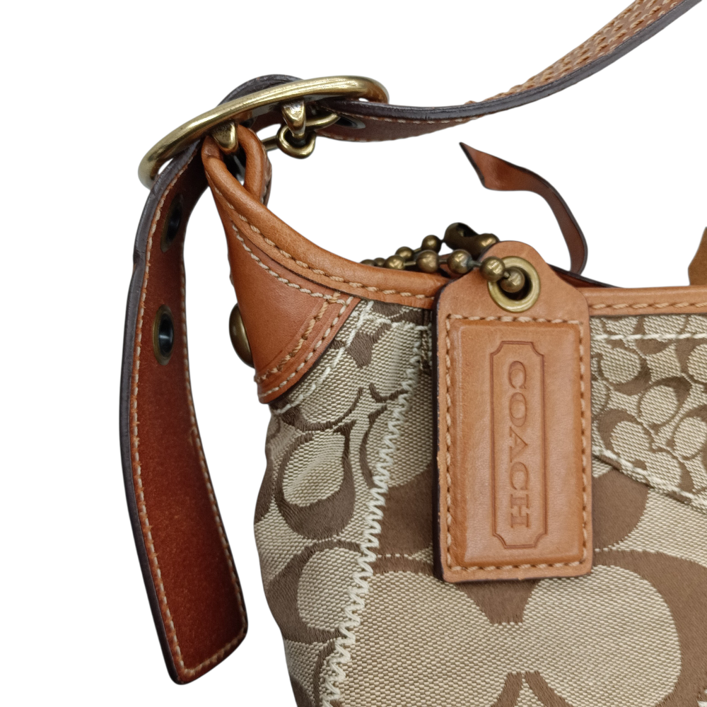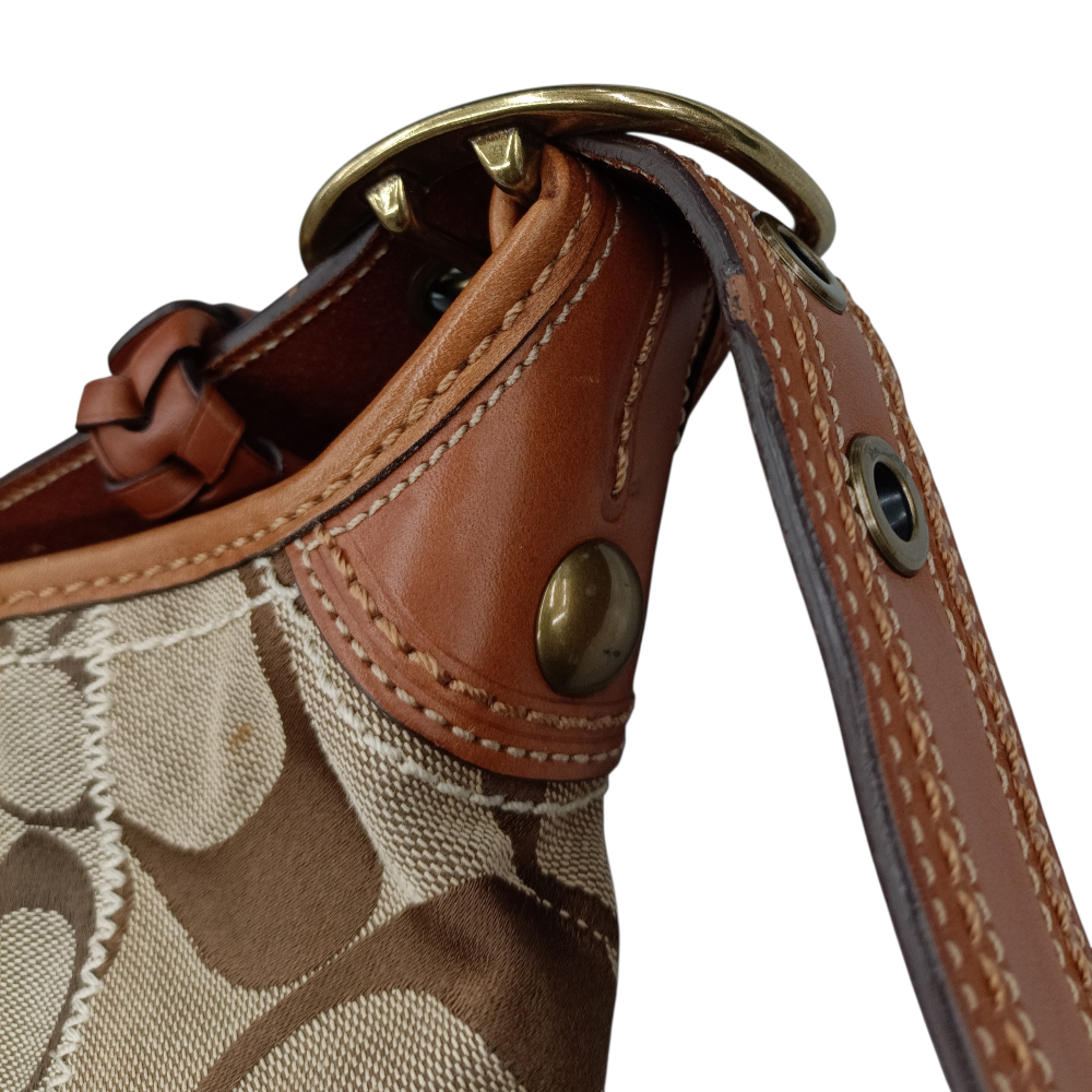 中古 COACH ブリーカー シグネチャー キルテッドダッフル 11452 ショルダーバッグ バケツ型 レザー×キャンバス ブラウン