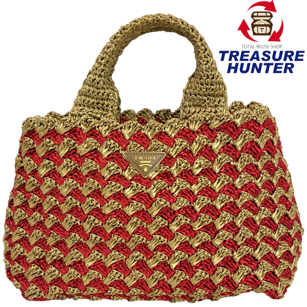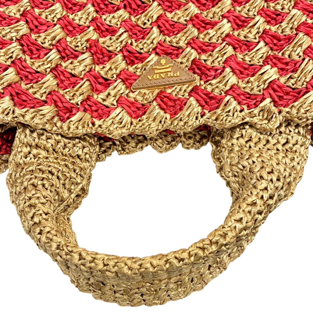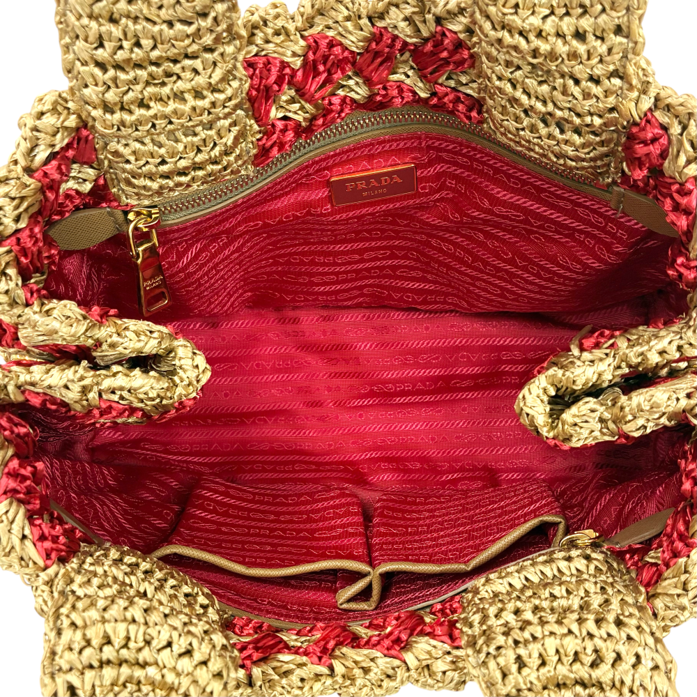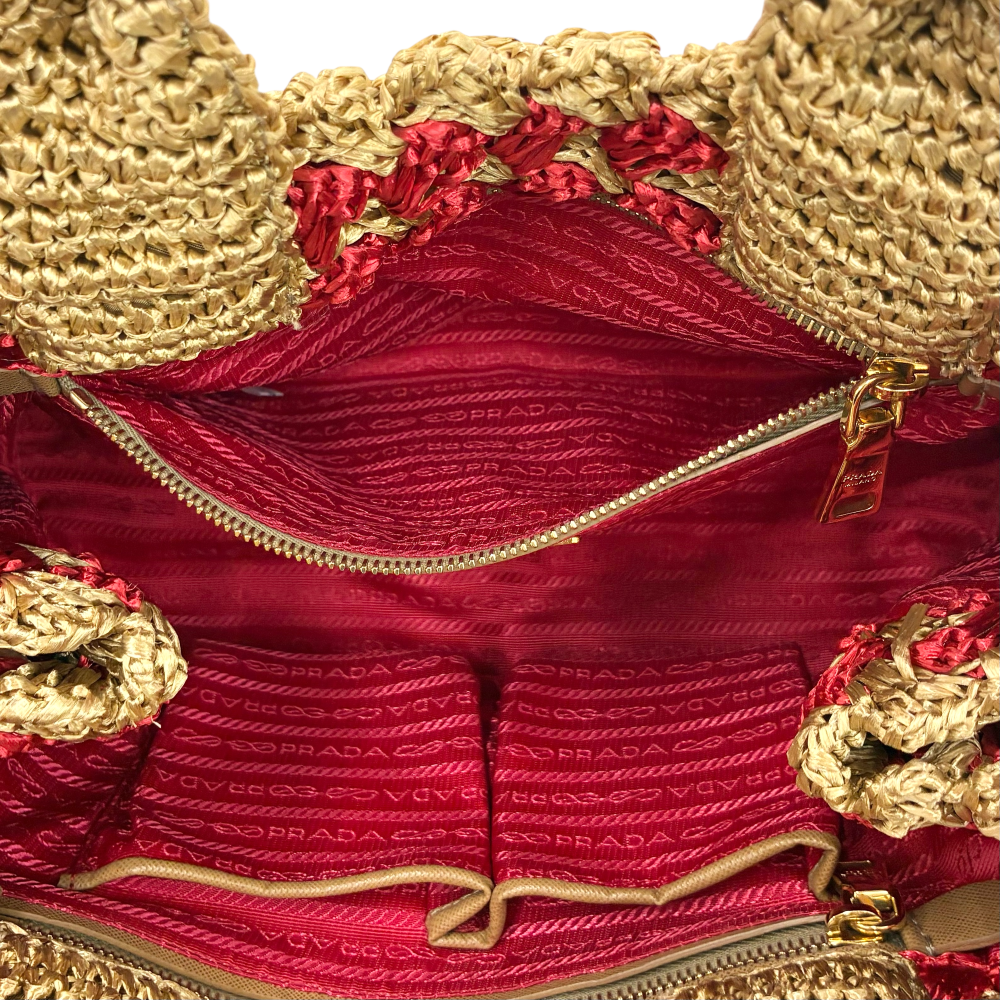 PRADA ラフィアクロケット カナパ ミディアムトート BN2303 ベージュ×レッド プラダ