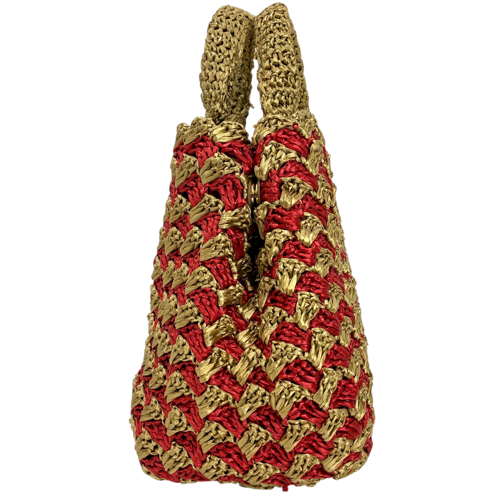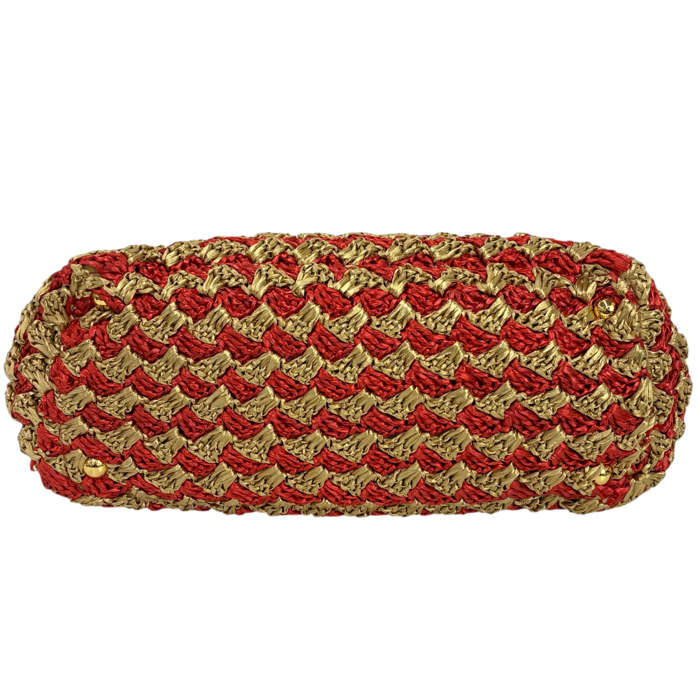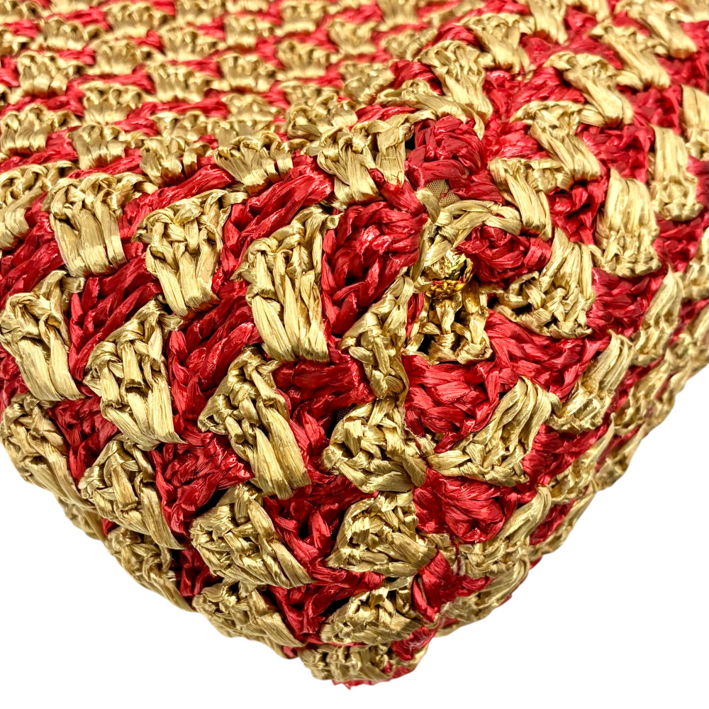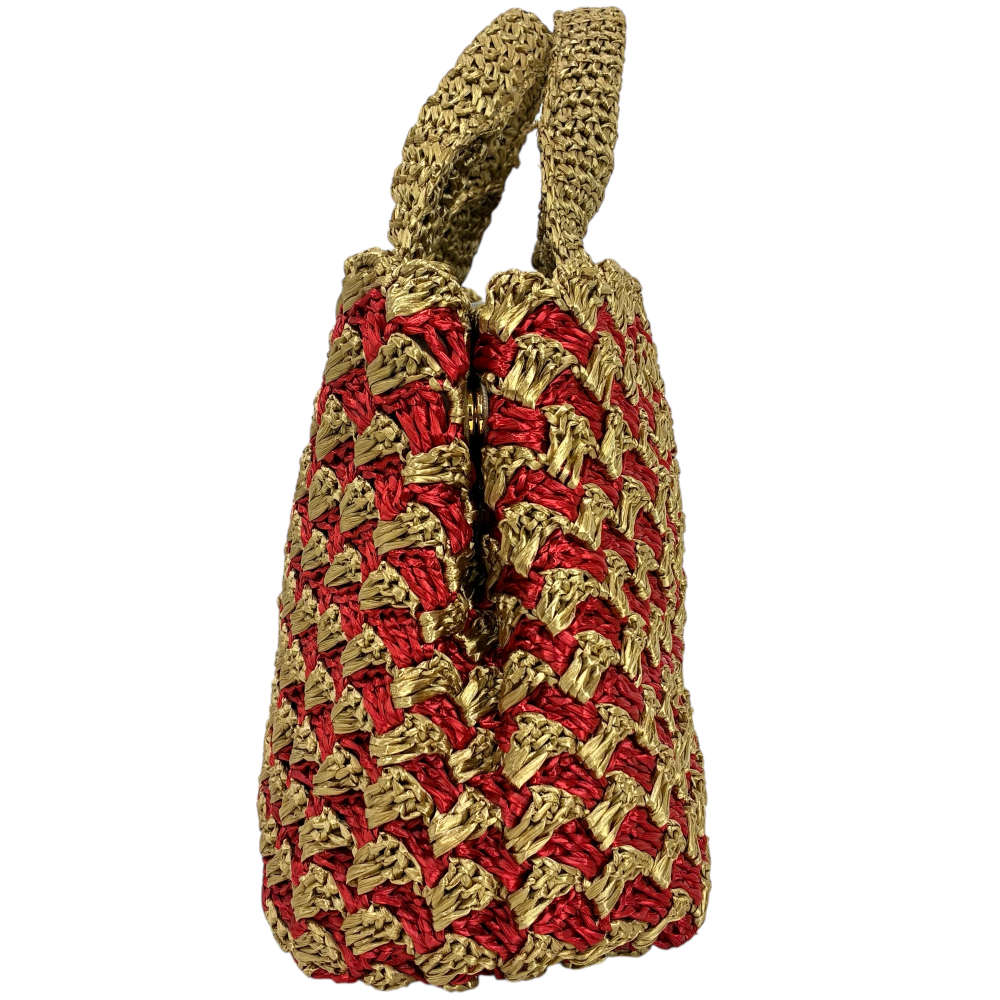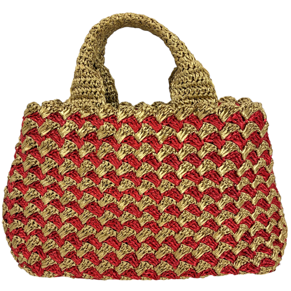 PRADA ラフィアクロケット カナパ ミディアムトート BN2303 ベージュ×レッド プラダ