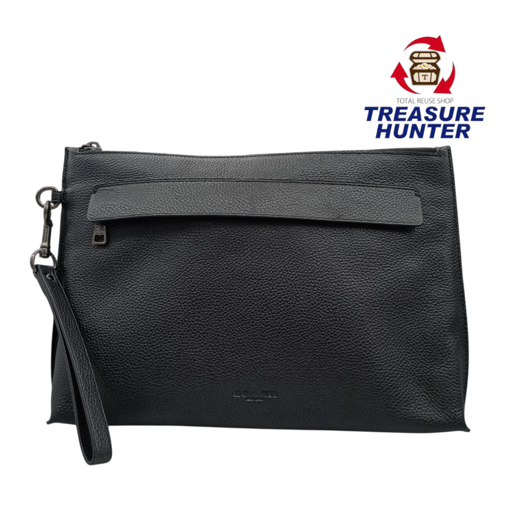 中古 COACH レザークラッチバッグ F28614 セカンド ブラック ペプルレザー
