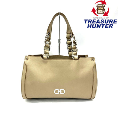 Salvatore Ferragamo フェラガモ Wガンチーニ ヴァラ チェーン ハンドバッグ レザー ベージュ レディース バッグ 【102062490003】