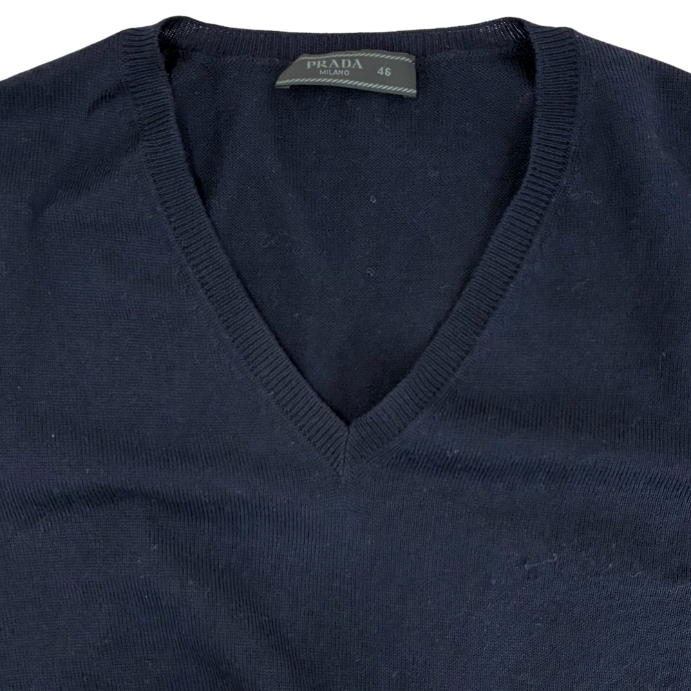 PRADA Vネックニット 長袖 DNA386 507 サイズ46(約Mサイズ相当) ネイビー プラダ