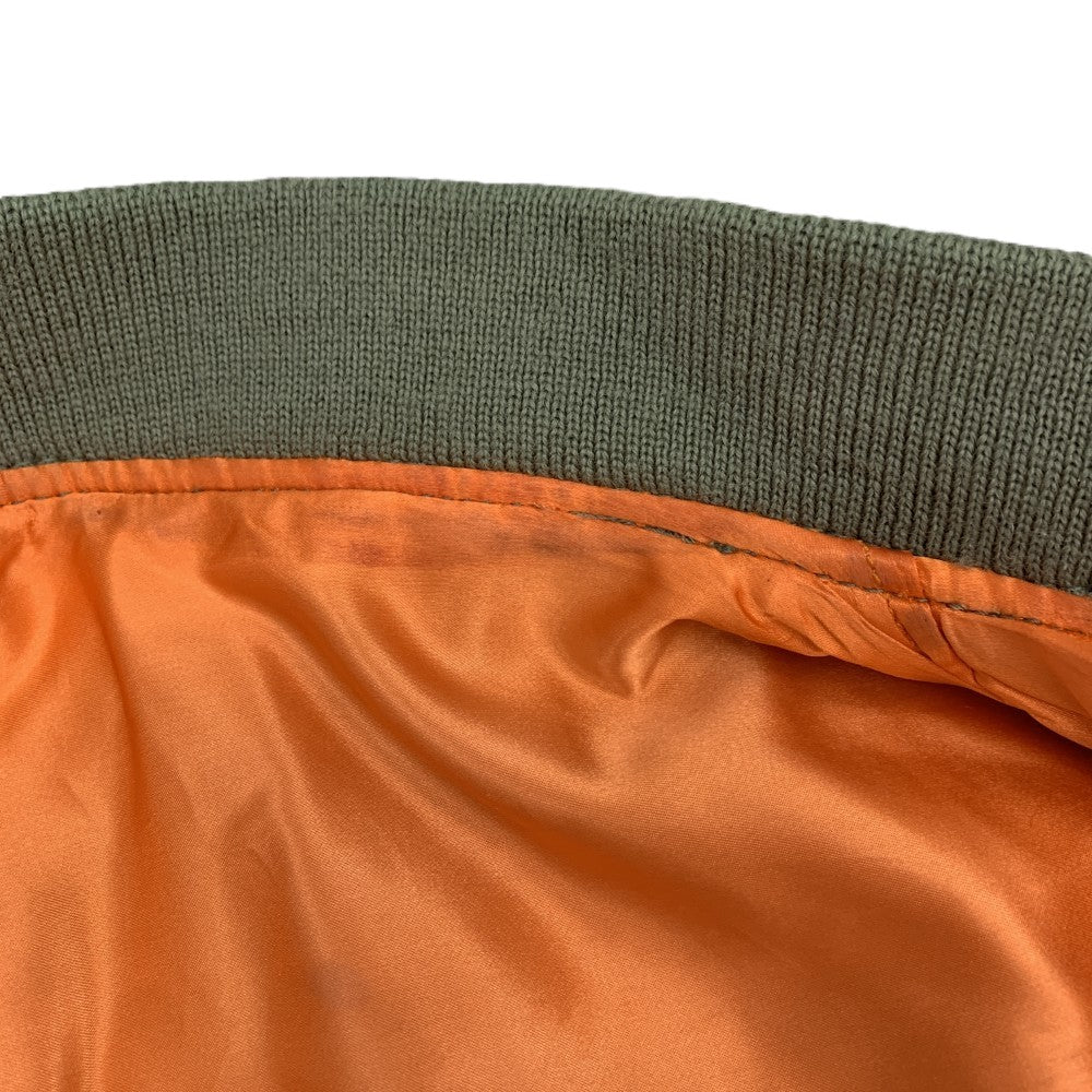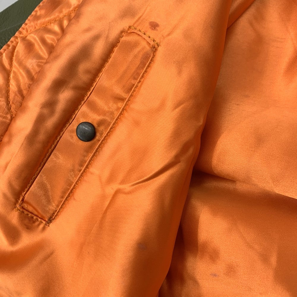 スレやシワ、キズ、特にオレンジ部分に汚れなどがございます。裾のリブ部分に補修跡あり。