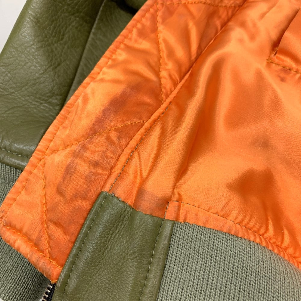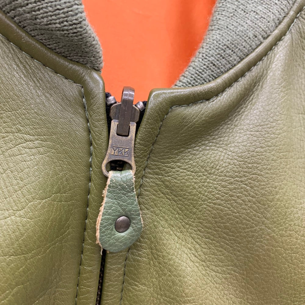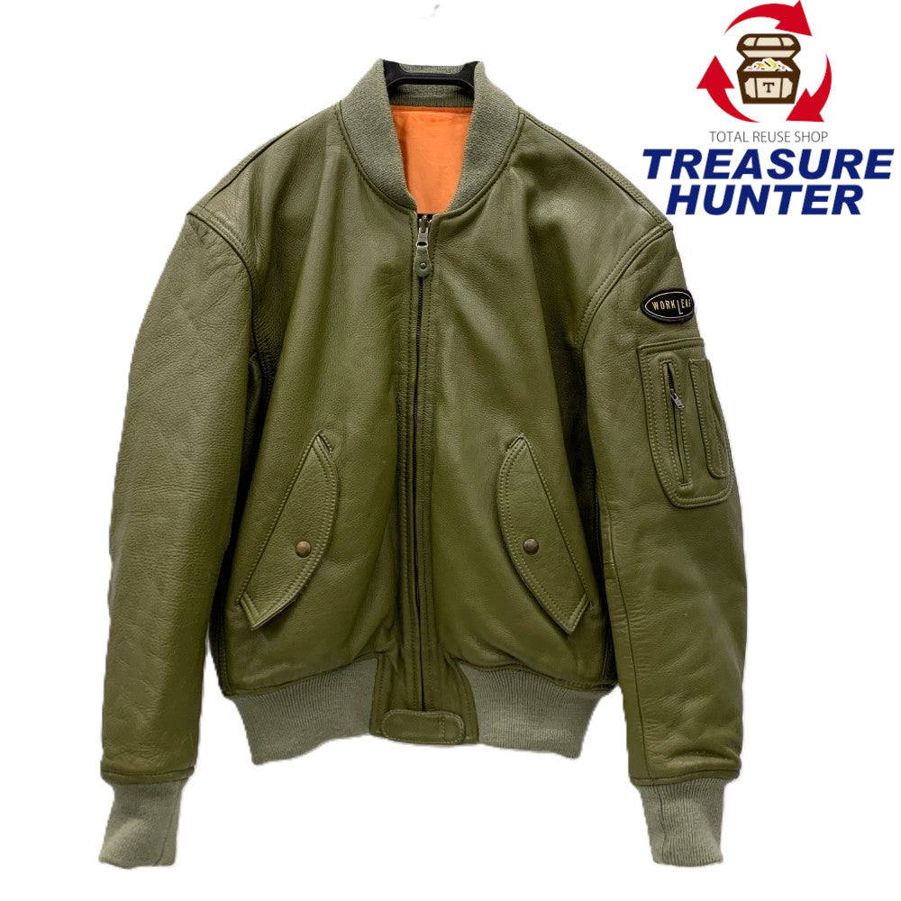 WORK LEAF(ワークリーフ) MA-1タイプ レザージャケット サイズL カーキ メンズ