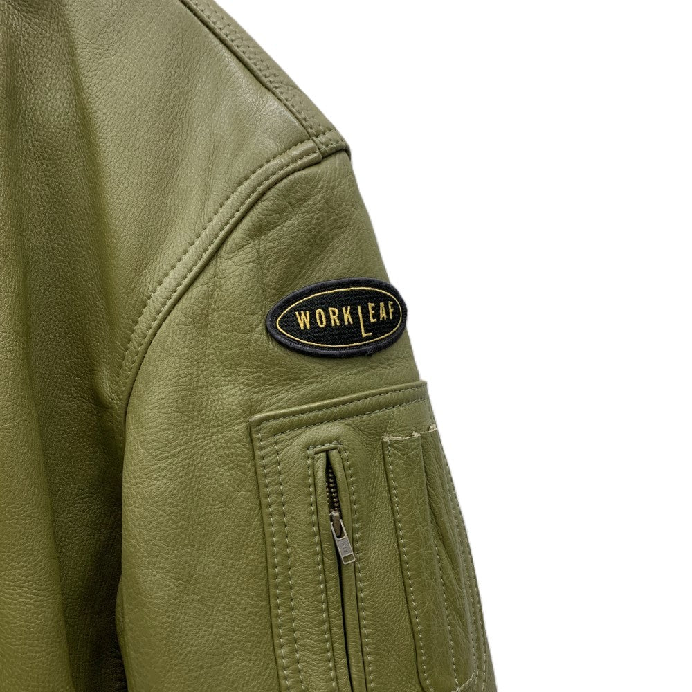 WORK LEAF(ワークリーフ) MA-1タイプ レザージャケット サイズL カーキ メンズ 【100062746005】