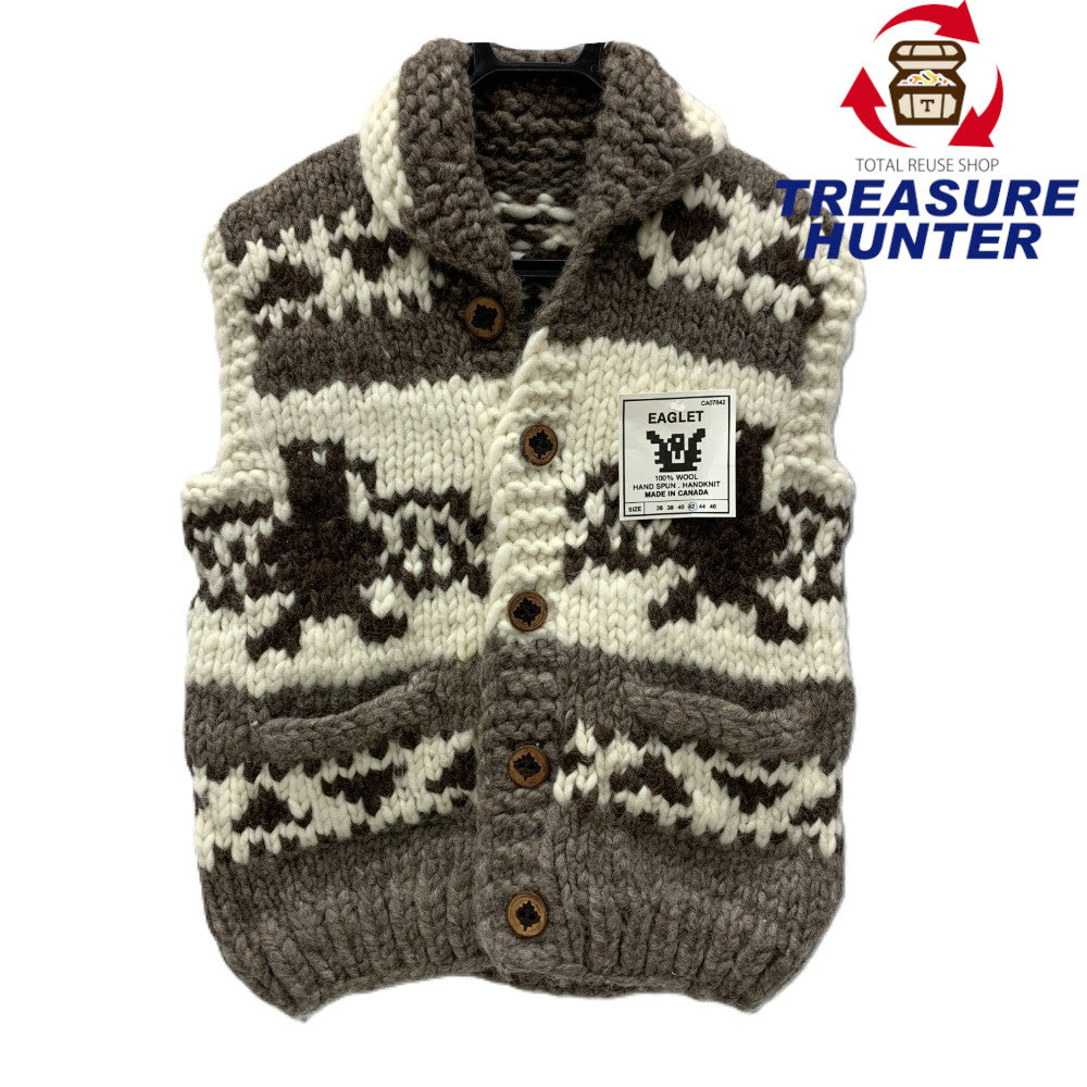 EAGLET(イーグレット) カウチンニットベスト サイズ42 ホワイト×ブラウン系 タグ付き 未使用保管品 メンズ
