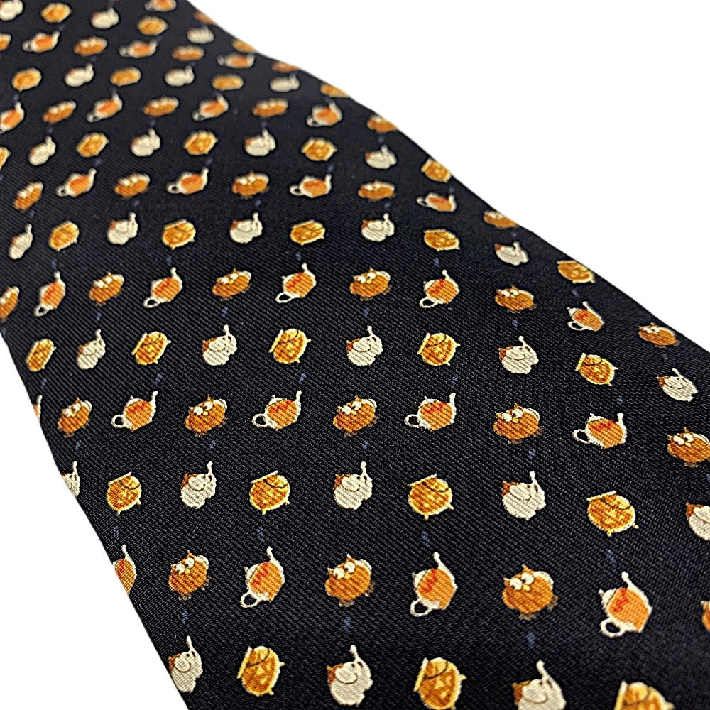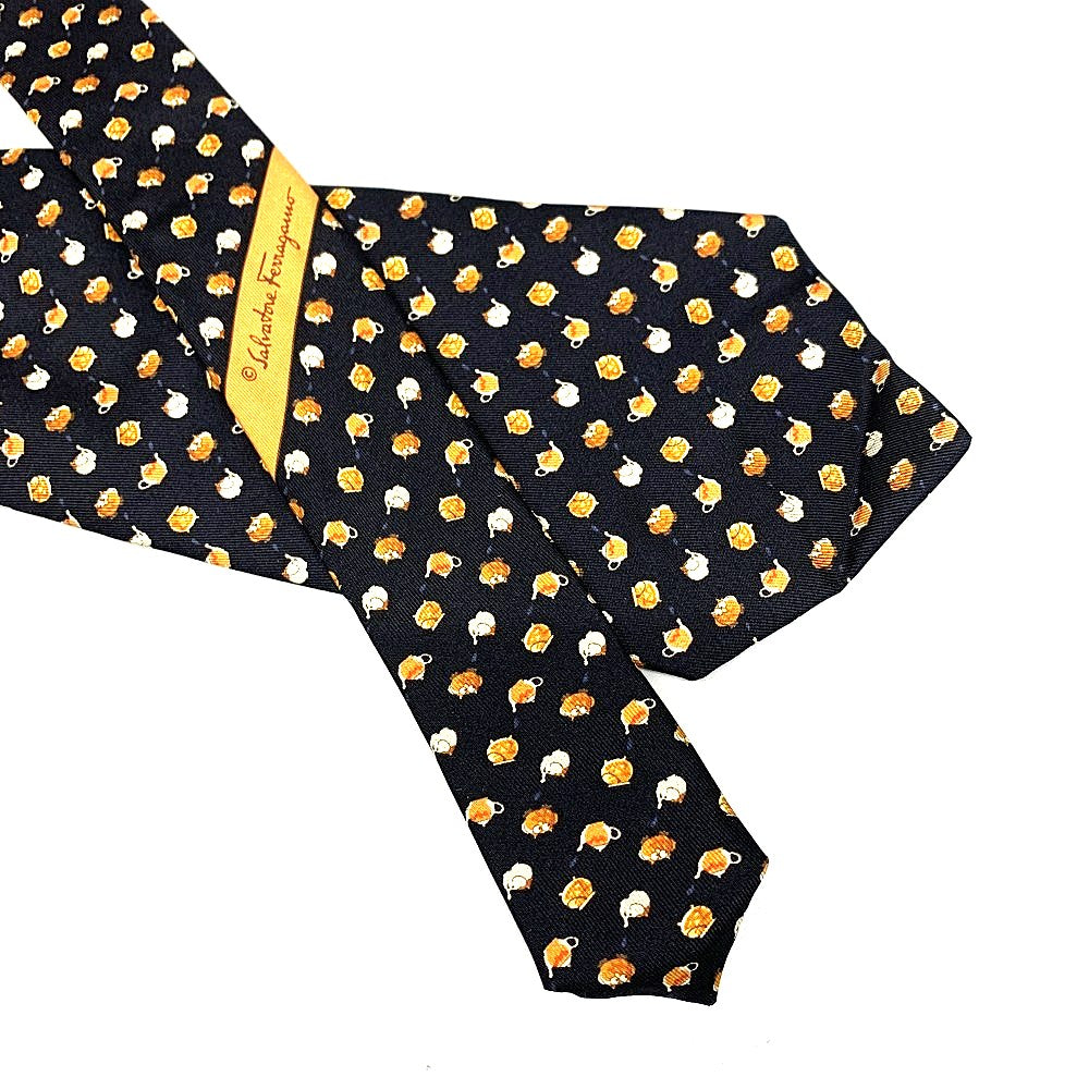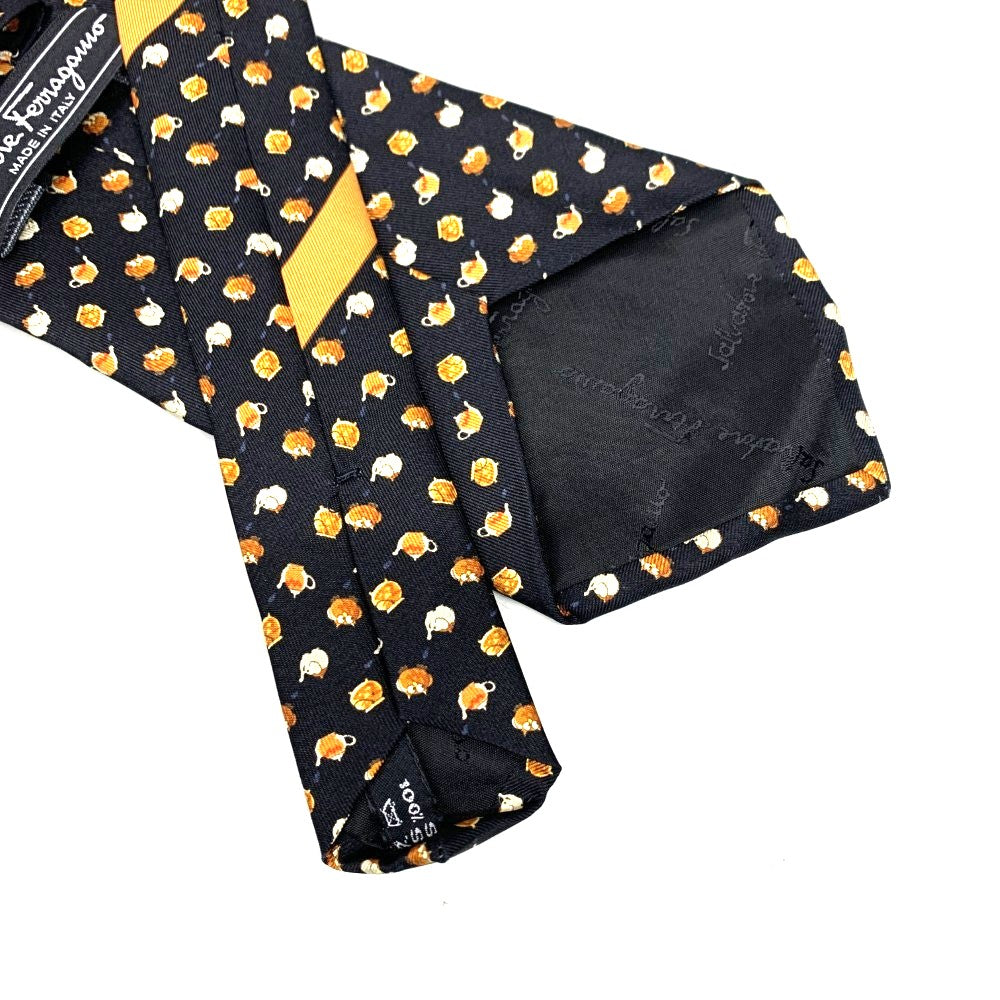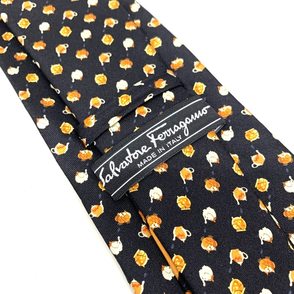 Salvatore Ferragamo ネクタイ ティーポット柄 シルク100% ブラック フェラガモ 未使用品