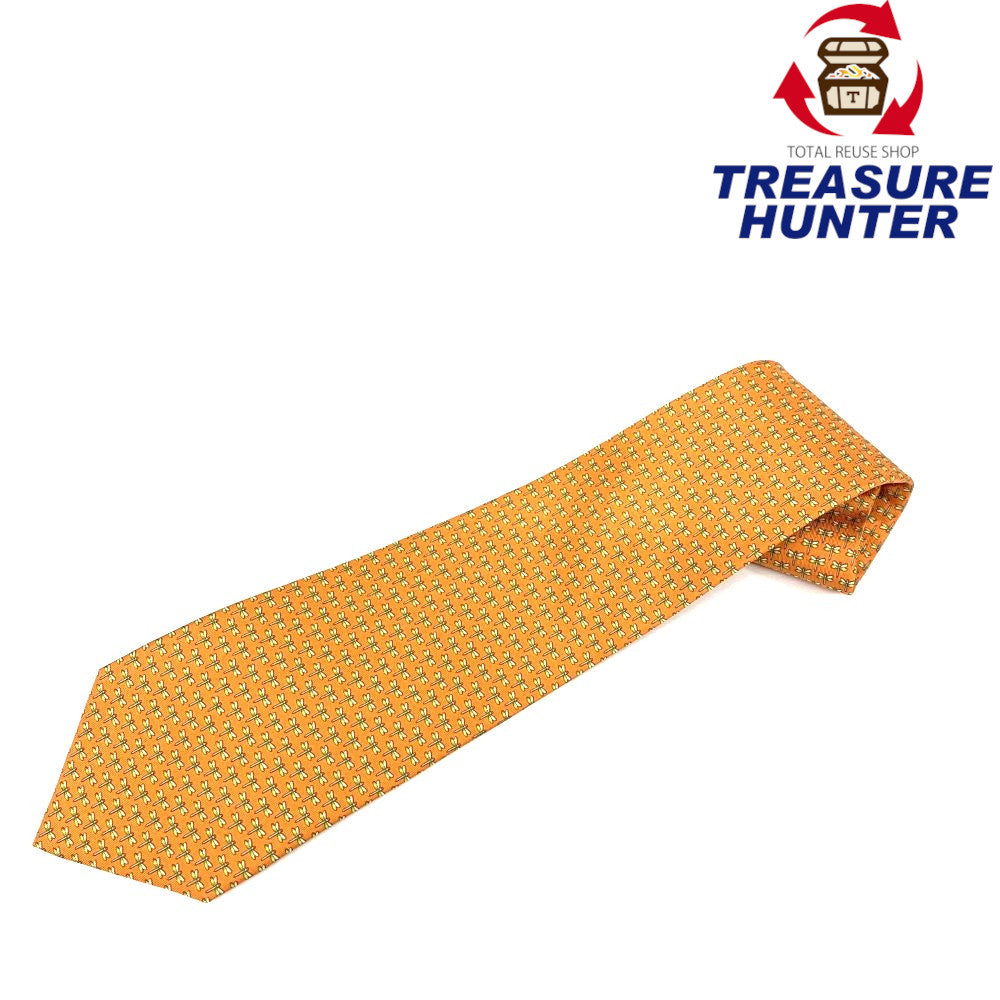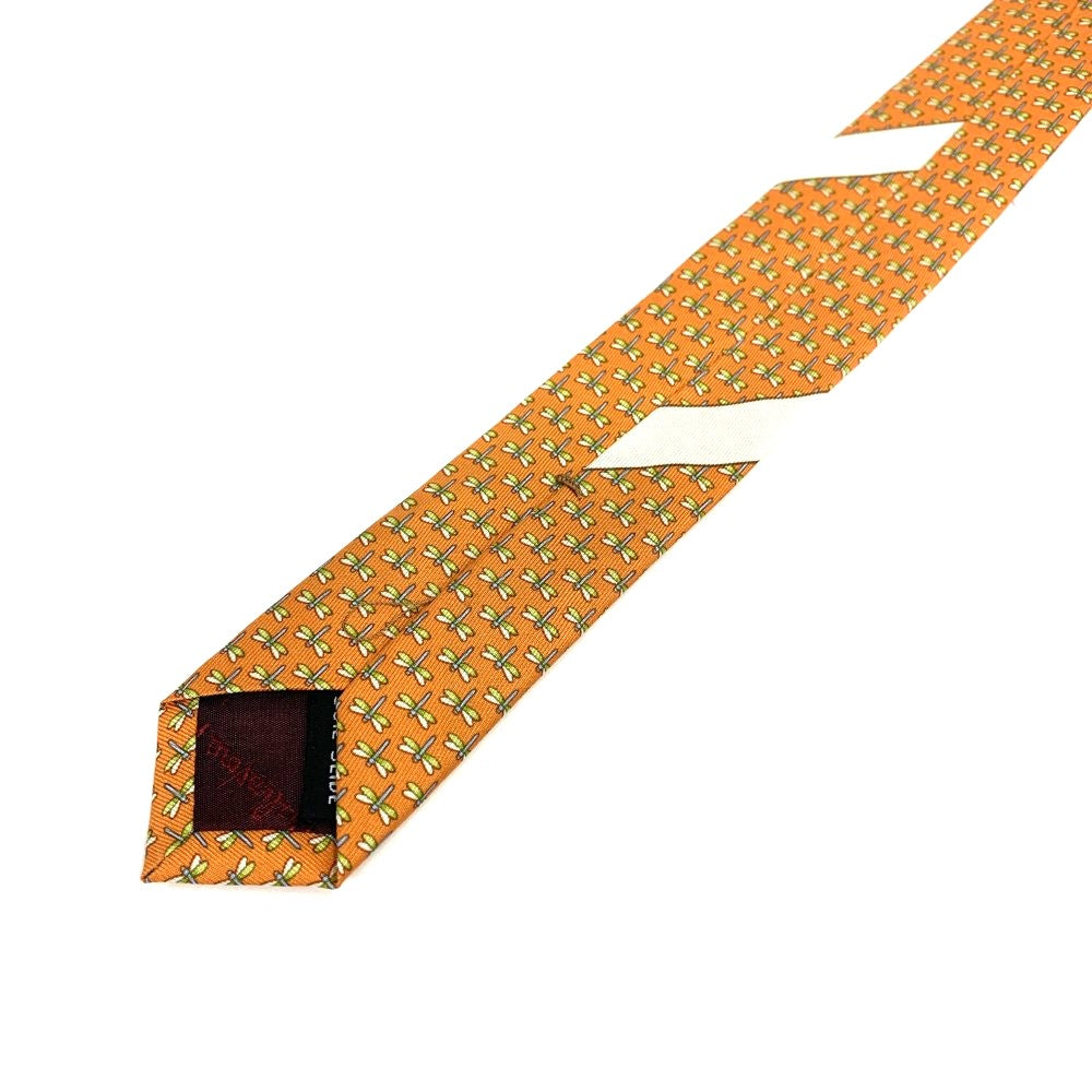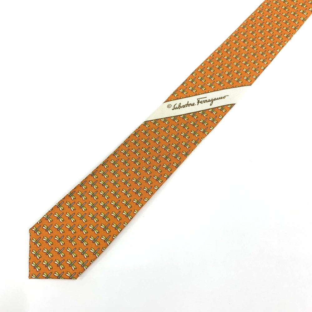 Salvatore Ferragamo(サルヴァトーレ・フェラガモ) ネクタイ トンボ柄 オレンジ シルク100% 未使用品