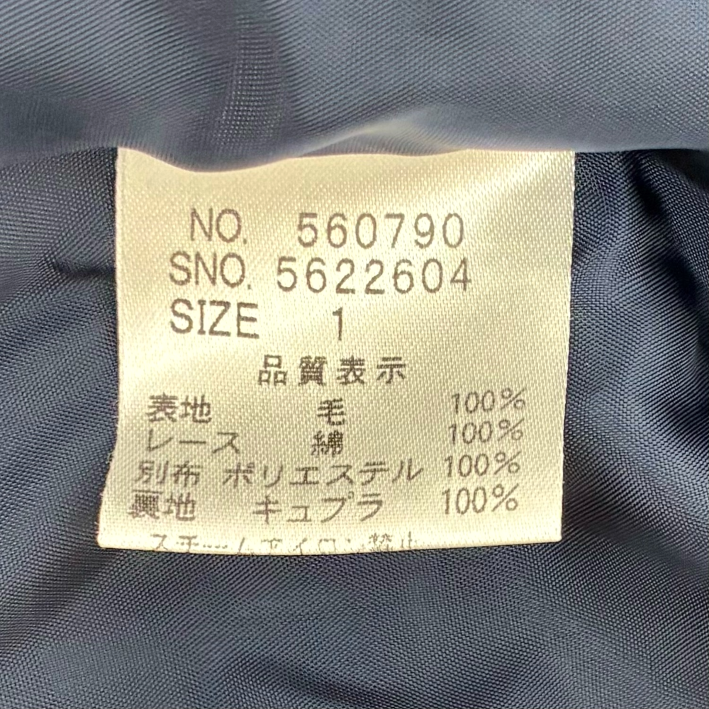 商品詳細 | ブランド:LE RUBAN D'OR レ ルバンドール 表地素材:毛 100% レース素材:綿 100% 別布素材:ポリエステル 100% 裏地素材:キュプラ 100% 品番:560790 カラー:ネイビー |