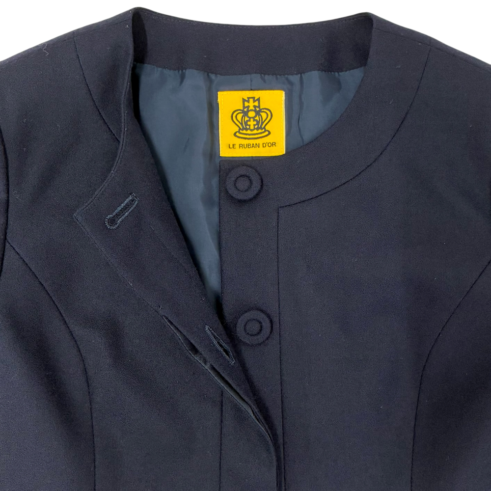 LE RUBAN D'OR お受験スーツ ノーカラージャケット&スクエアネックマーメイドラインワンピース サイズ1 ネイビー レ ルバンドール