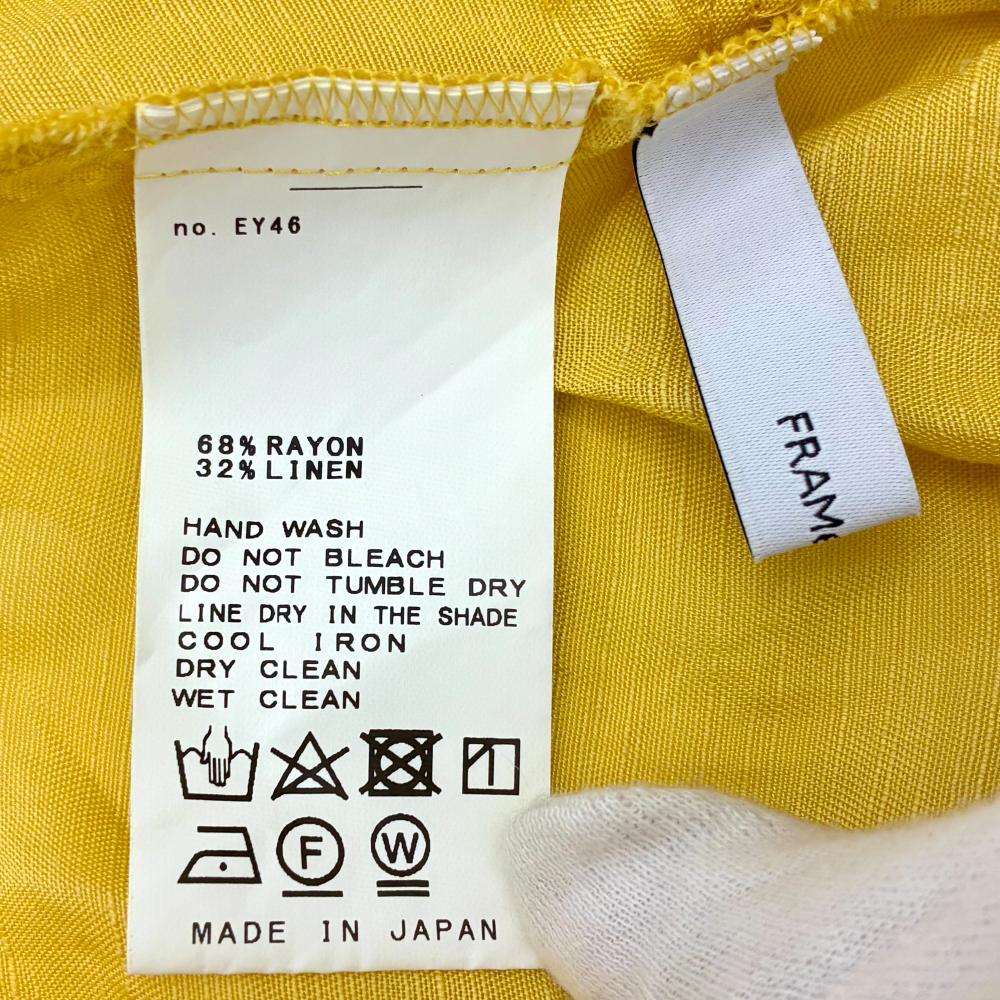 商品詳細 | ブランド:FRAMeWORK フレームワーク 素材:レーヨン68% リネン32% 品番:23051220740120 カラー:イエロー 原産国/製造国:日本 |
