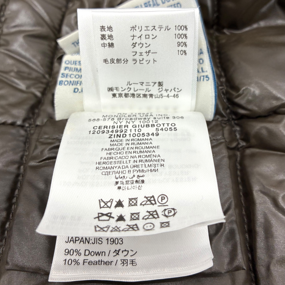 MONCLER CERISIER GIUBBOTTO 120934992110-54055 サイズ0(約Sサイズ相当) カーキ ダウン90% フェザー10% ダウンコート モンクレール