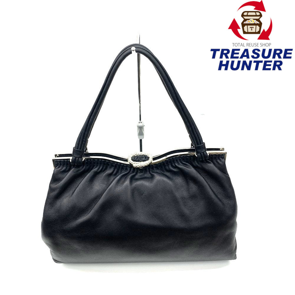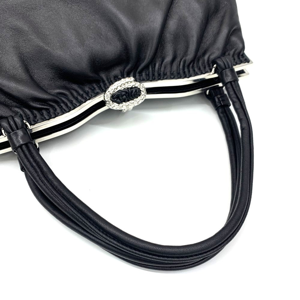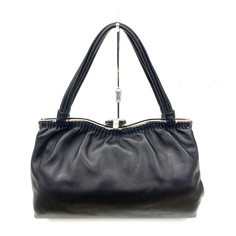 HAMANO(ハマノ)がま口ハンドバッグ レザー ブラック レディース バッグ