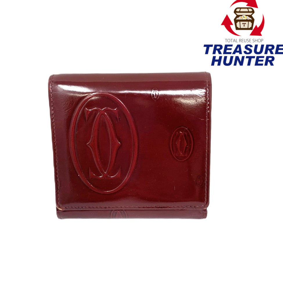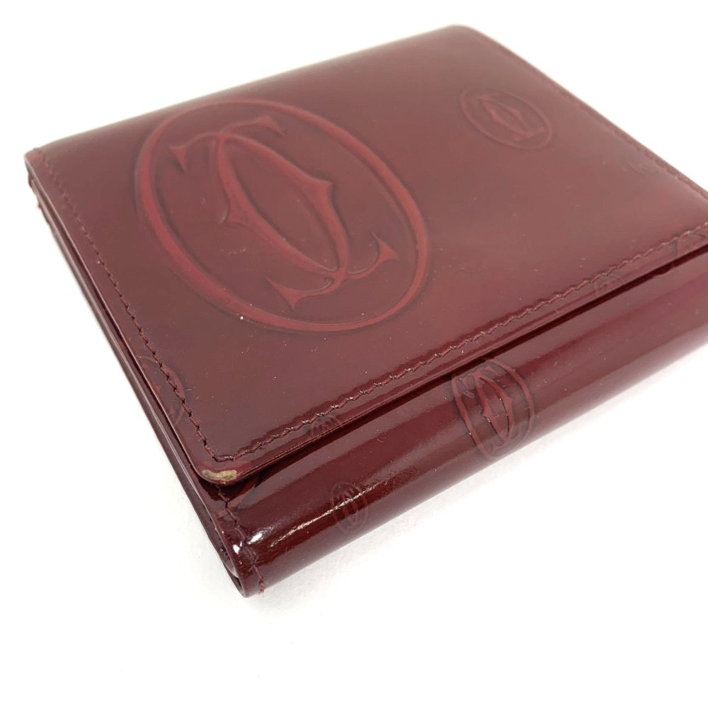 Cartier(カルティエ) ハッピーバースデー 三つ折り財布 レザー ボルドー バーガンディ スナップボタン開閉 レディース