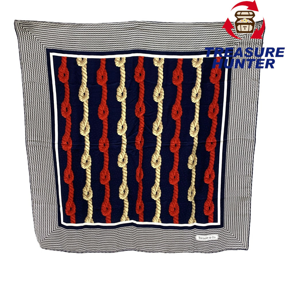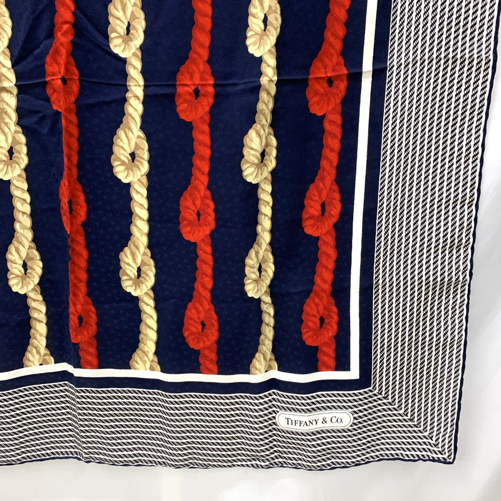 TIFFANY&Co.(ティファニー) ロープ&ダンシングT スカーフ シルク100% ネイビー×レッド×ブラウン