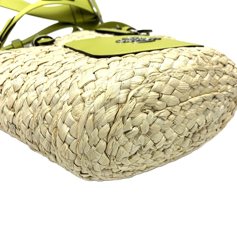 COACH(コーチ) ストロー スモール トートバッグCJ519 ストロー×スムースレザー グリーン マグネット開閉 レディーズ バッグ