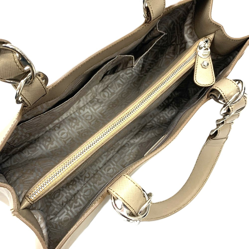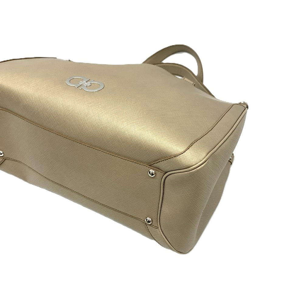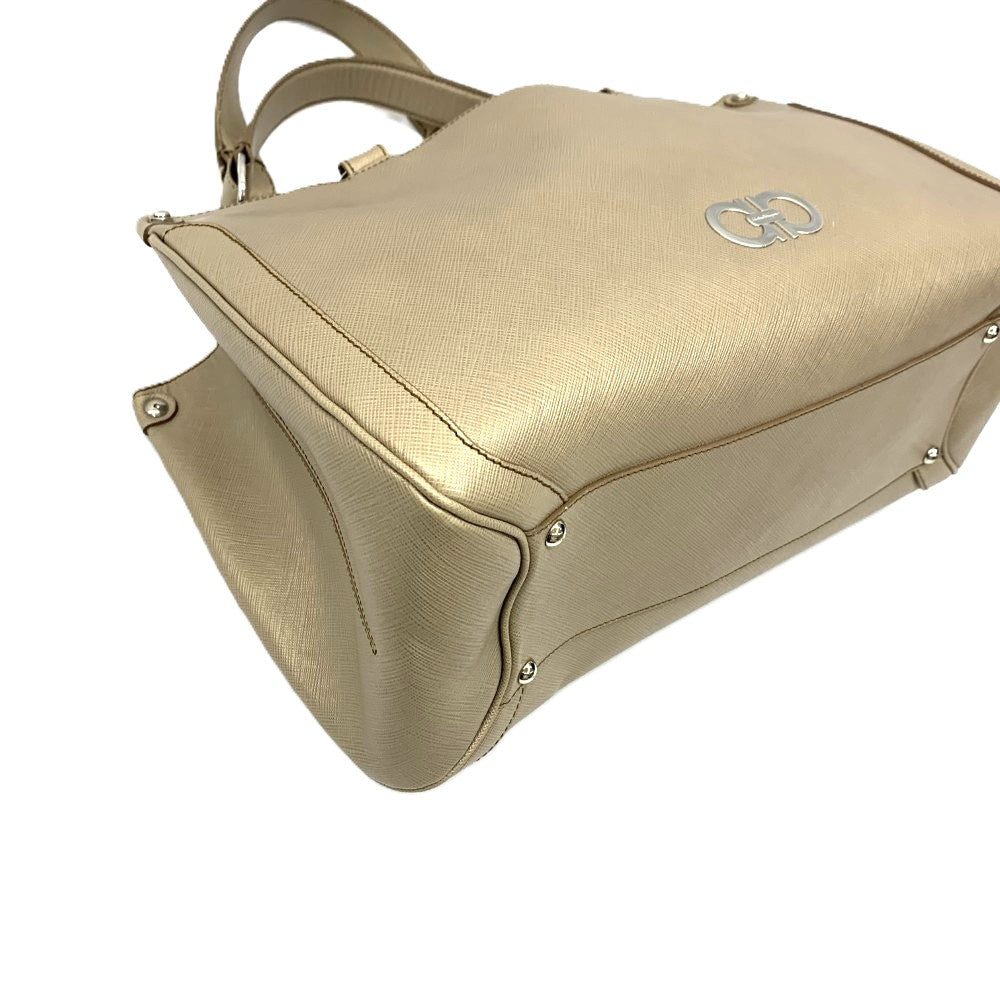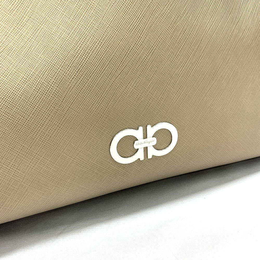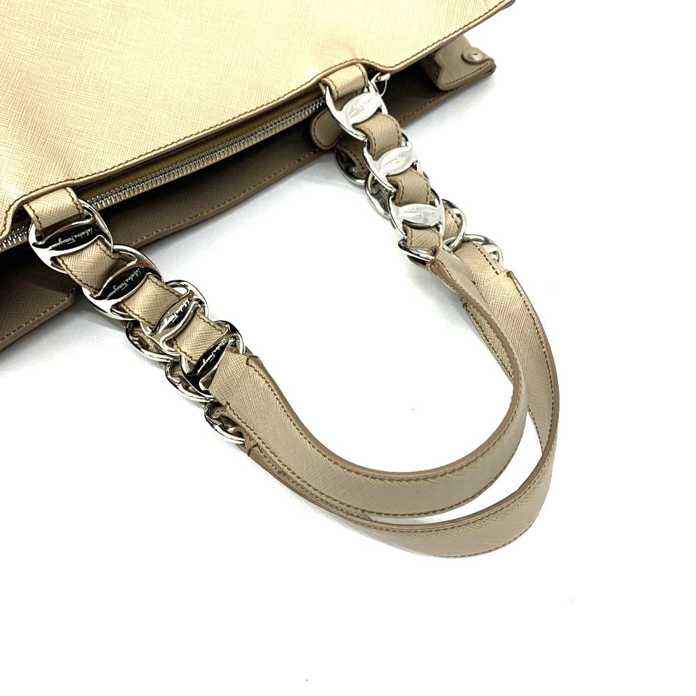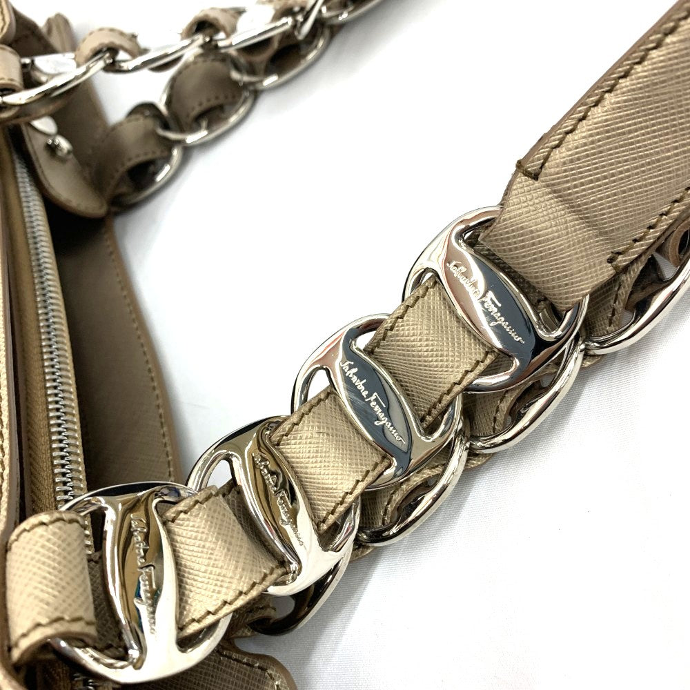 Salvatore Ferragamo フェラガモ Wガンチーニ ヴァラ チェーン ハンドバッグ レザー ベージュ レディース バッグ