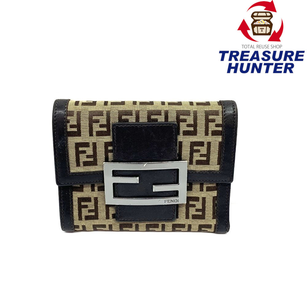 FENDI(フェンディ) ズッキーノ フラップ三つ折り財布 キャンバス×レザー ブラウン