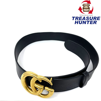 GUCCI グッチ ダブルG ワイドベルト レザー ブラック/ゴールド 400593 ウエスト70-85cm 【102062656003】