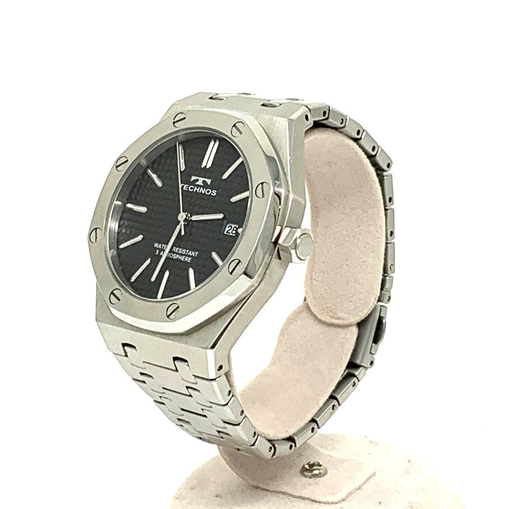 TECHNOS(テクノス) 腕時計 シルバー×ブラック文字盤 ステンレス クォーツ T9B74SB メンズ