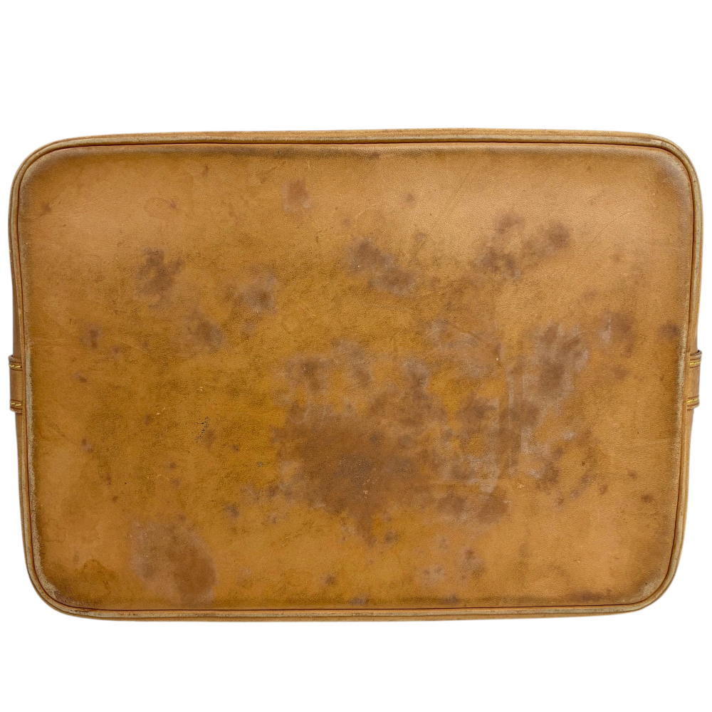 ヌメ革部分に劣化、スレやシミ、底部に角スレ等の使用感があります。