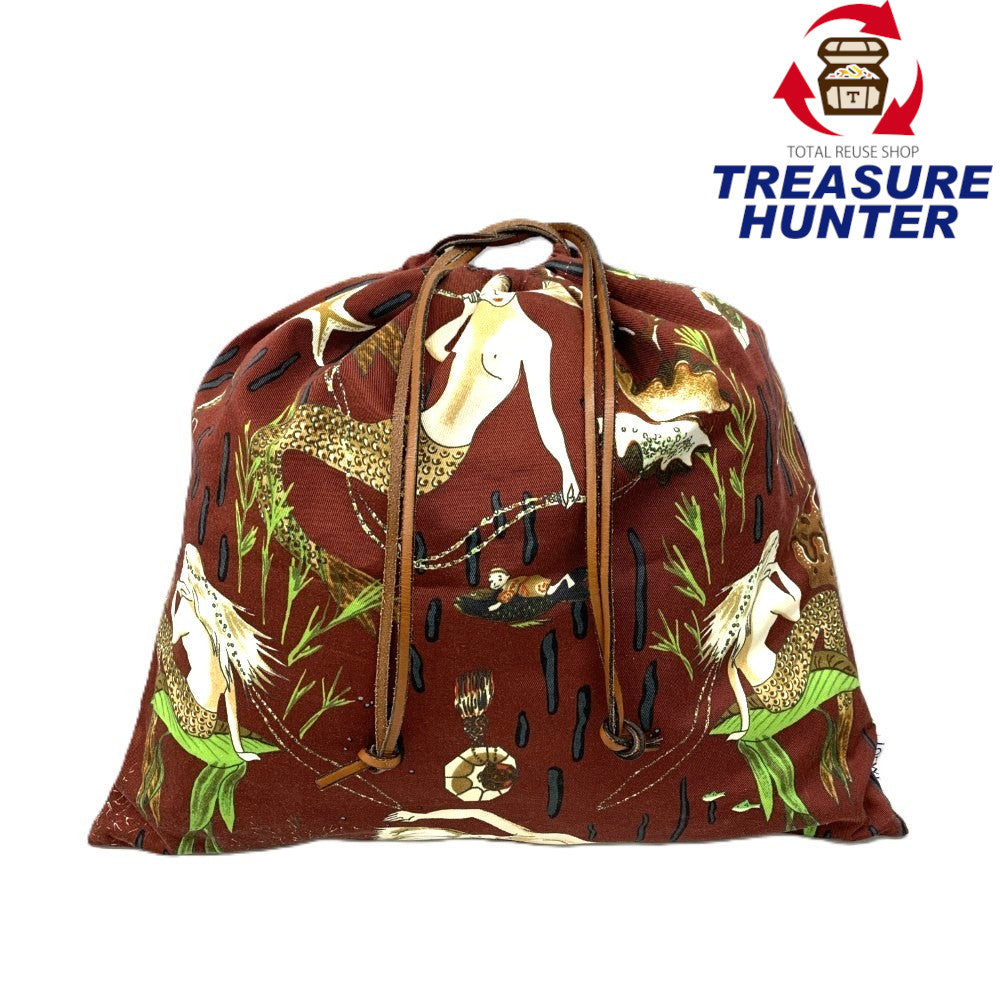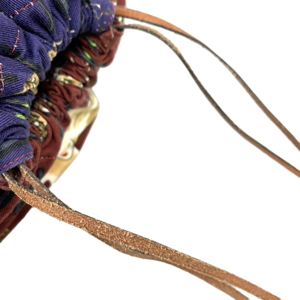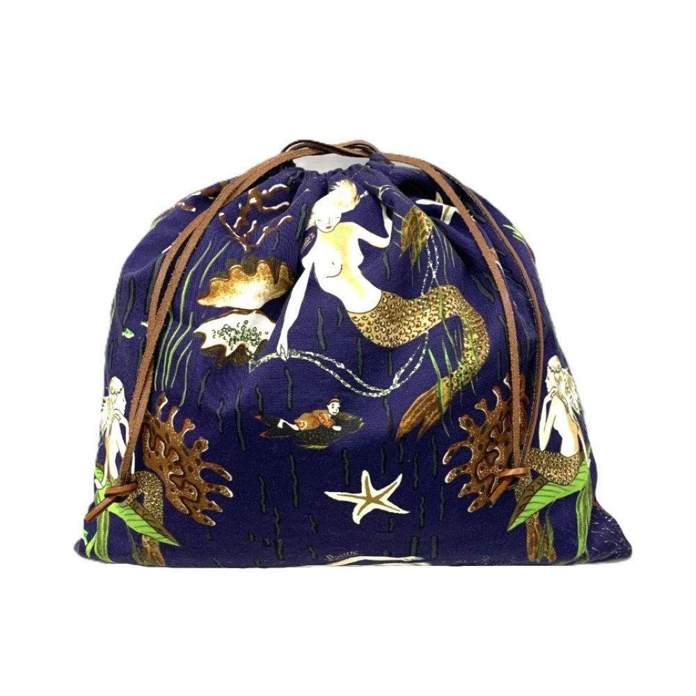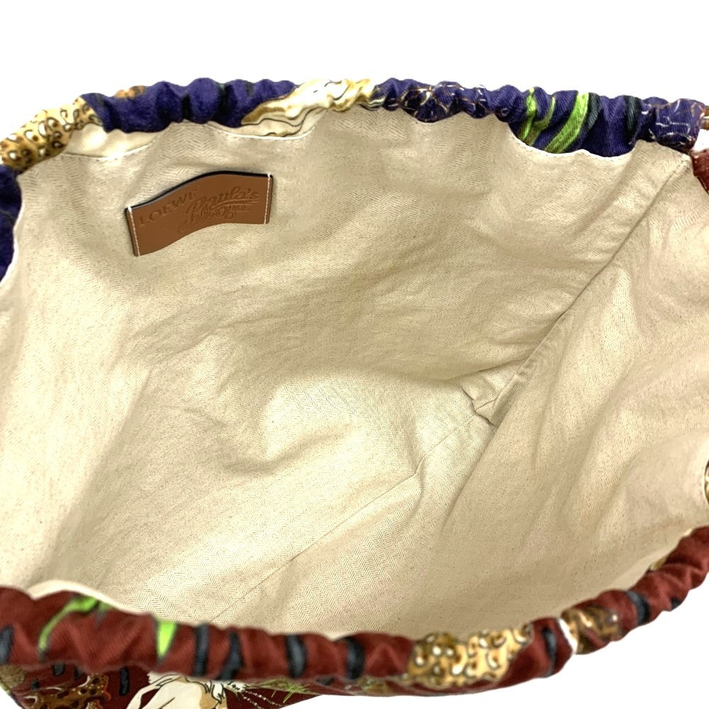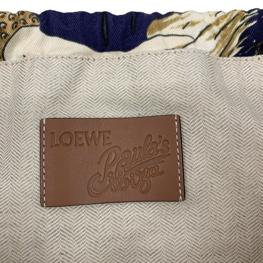 LOEWE(ロエベ) ドローストリングポーチ マーメイド柄 ブラウン×ネイビー コットン×レザー 巾着式