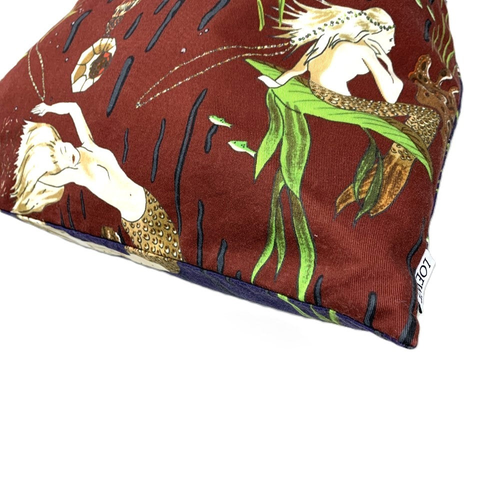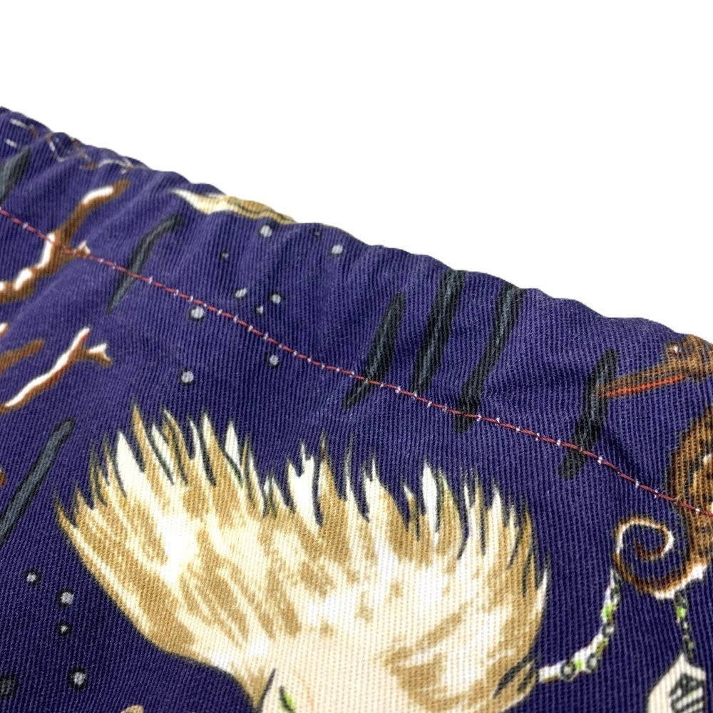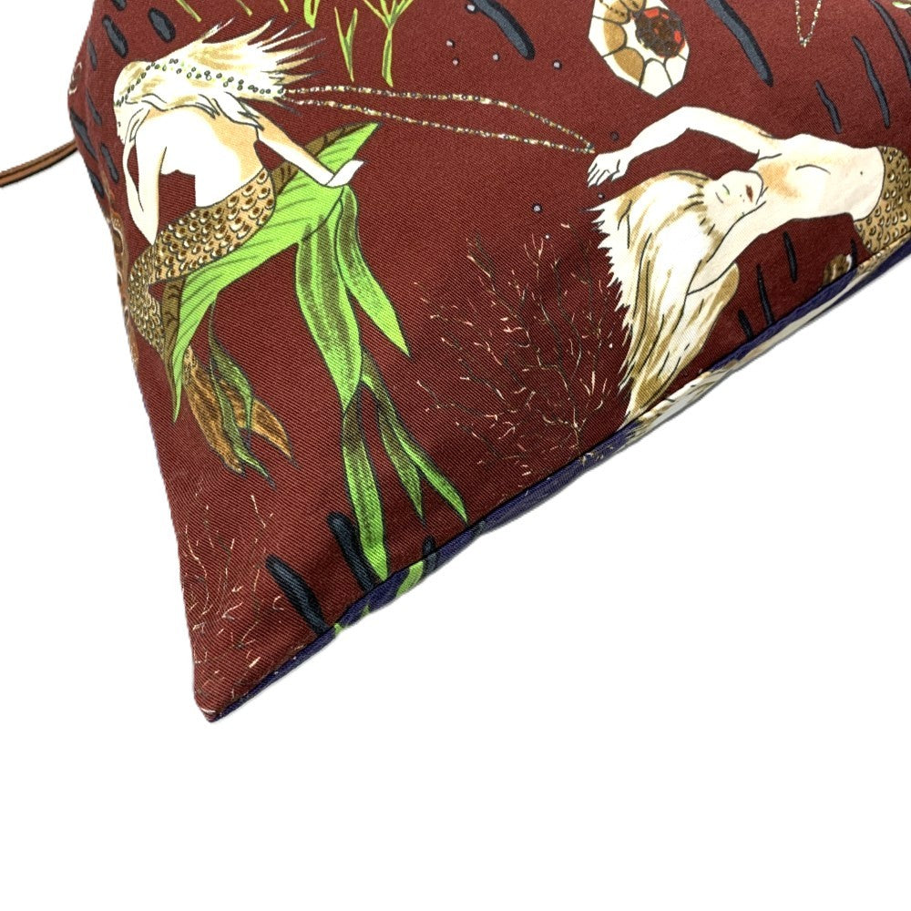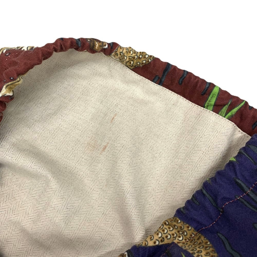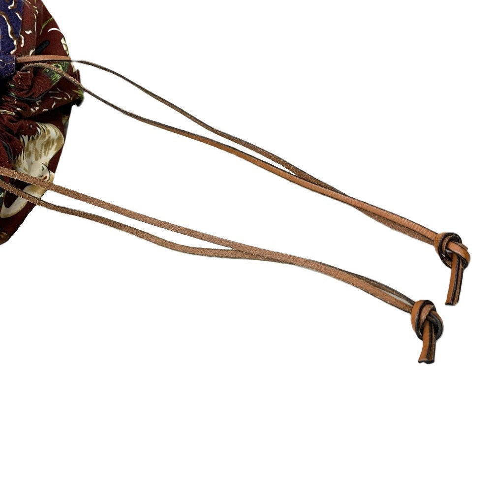 LOEWE(ロエベ) ドローストリングポーチ マーメイド柄 ブラウン×ネイビー コットン×レザー 巾着式