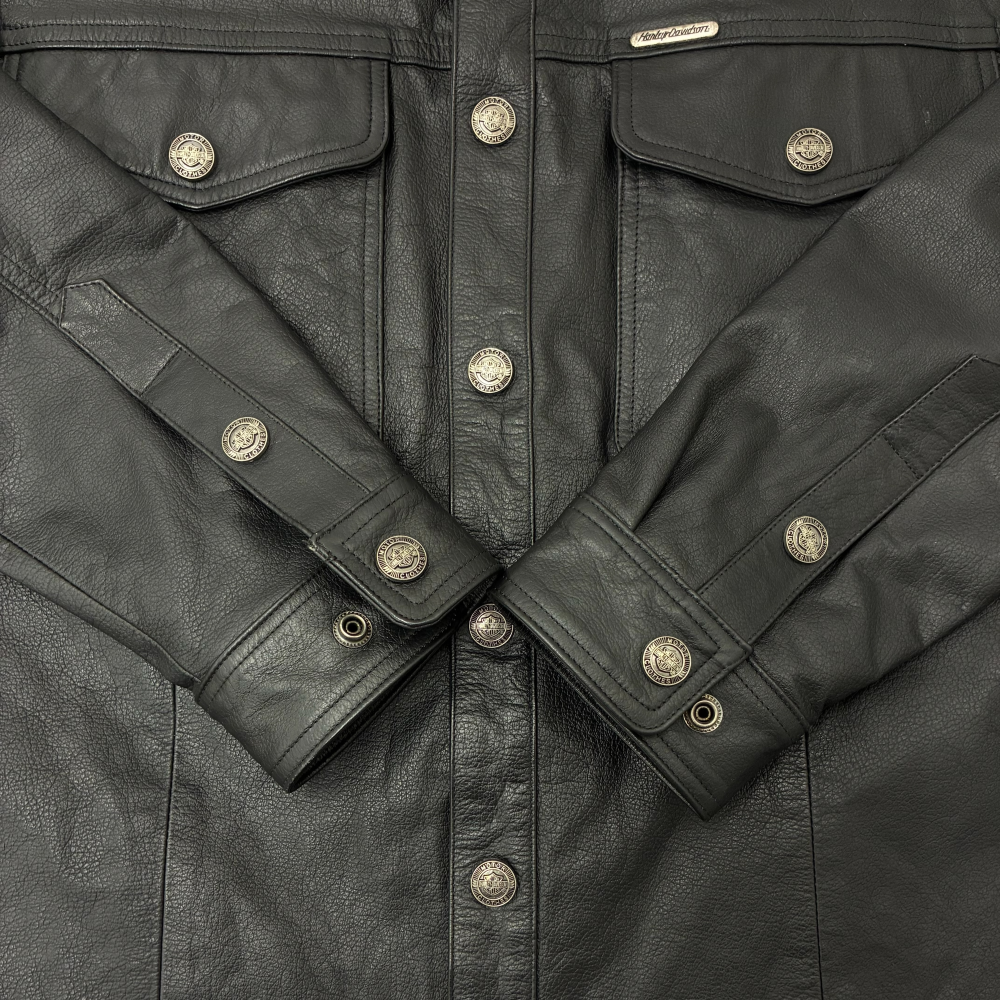 HARLEY DAVIDSON レザーシャツジャケット 98111-98VW サイズS ブラック ハーレーダビッドソン 【107113486002】